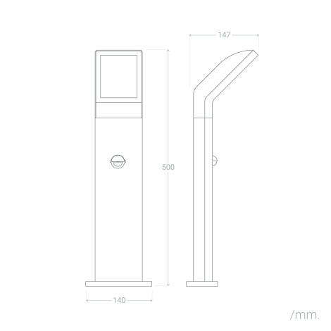 Balise Extérieure LED 9.5W en Saillie sur Pied 50cm Aluminium avec Détecteur de Mouvement Legacy