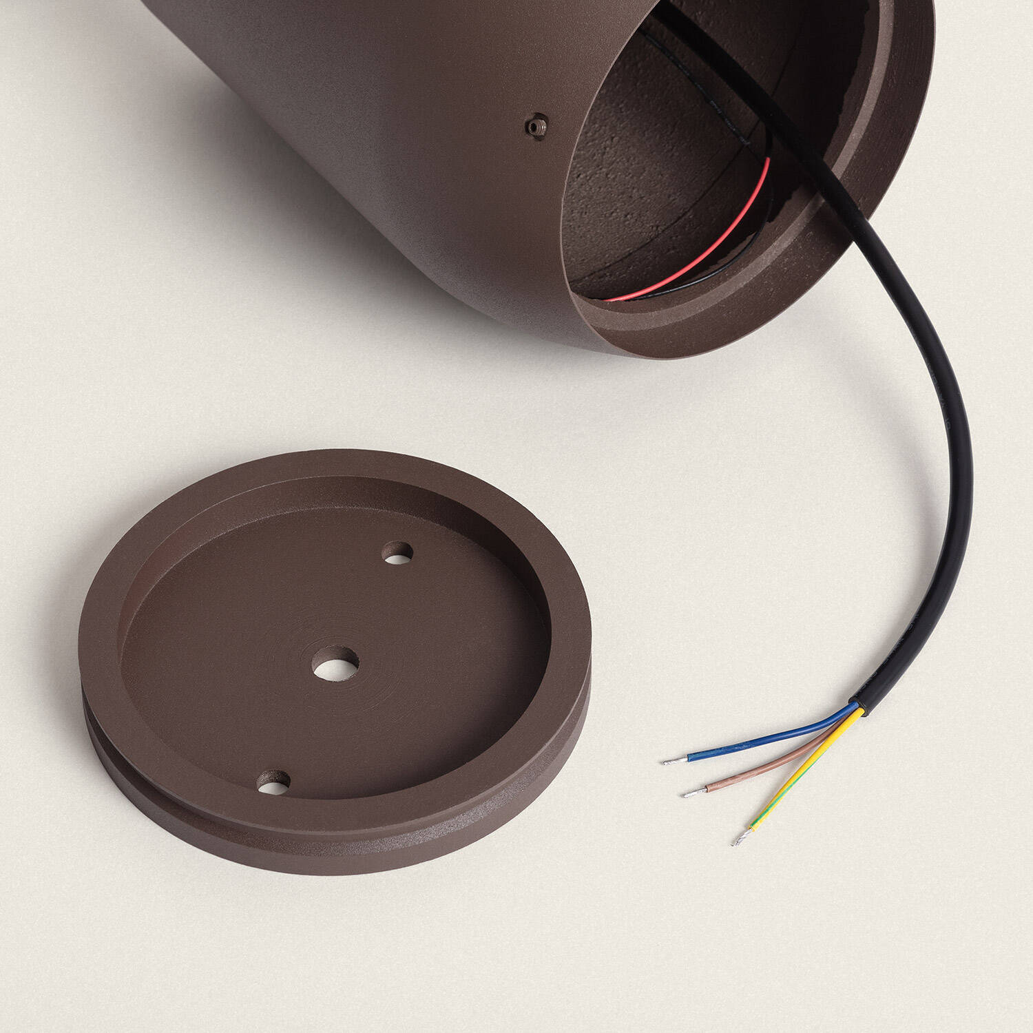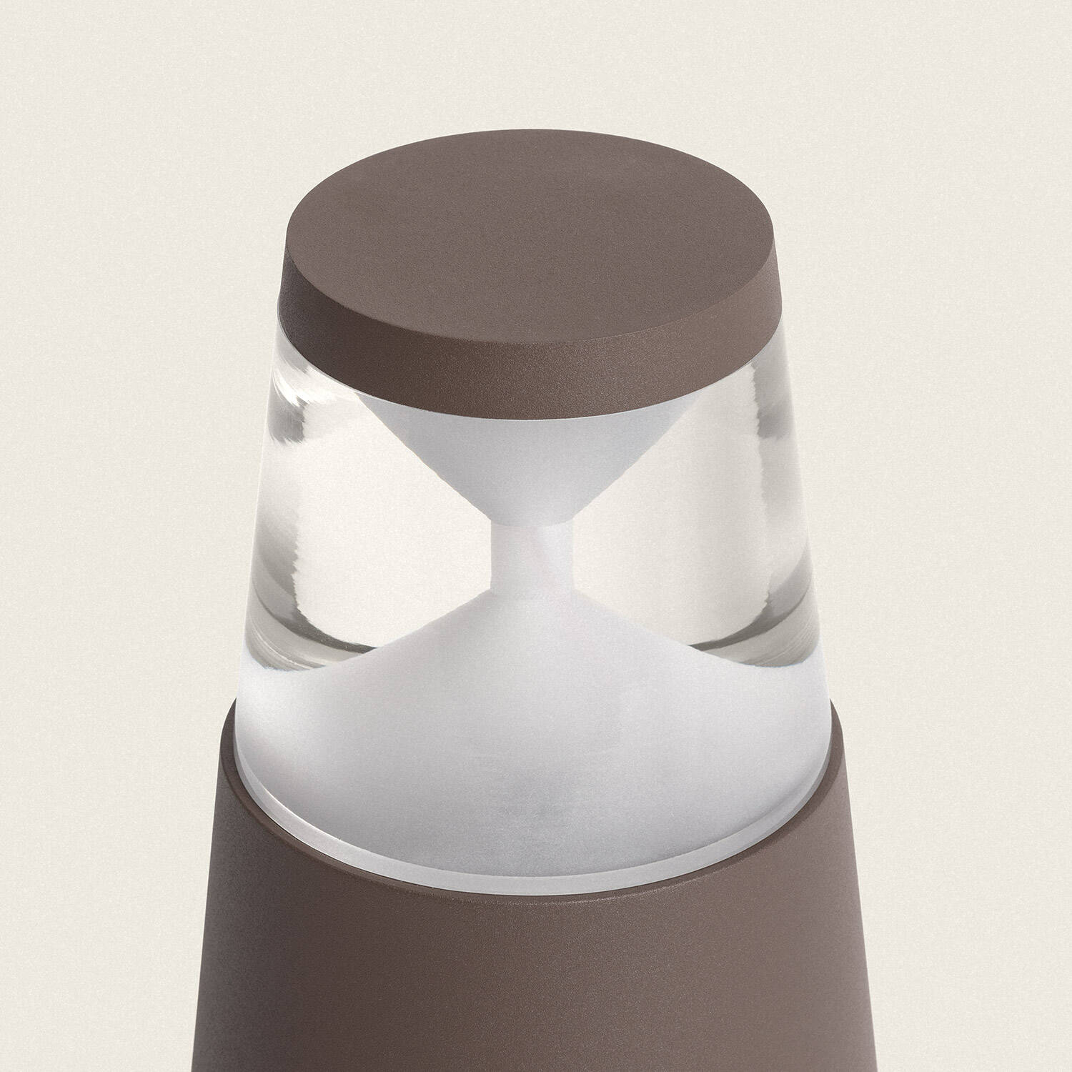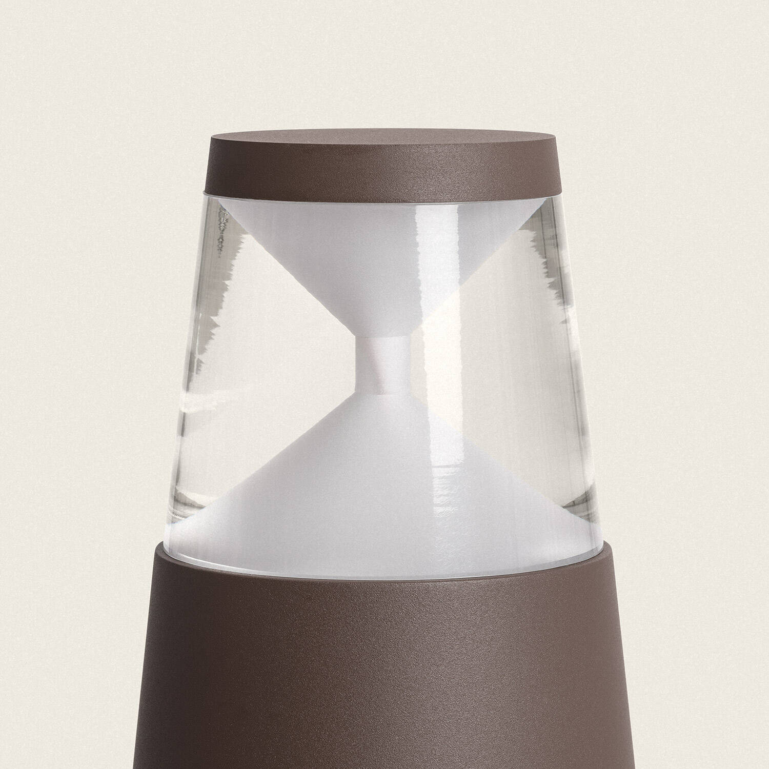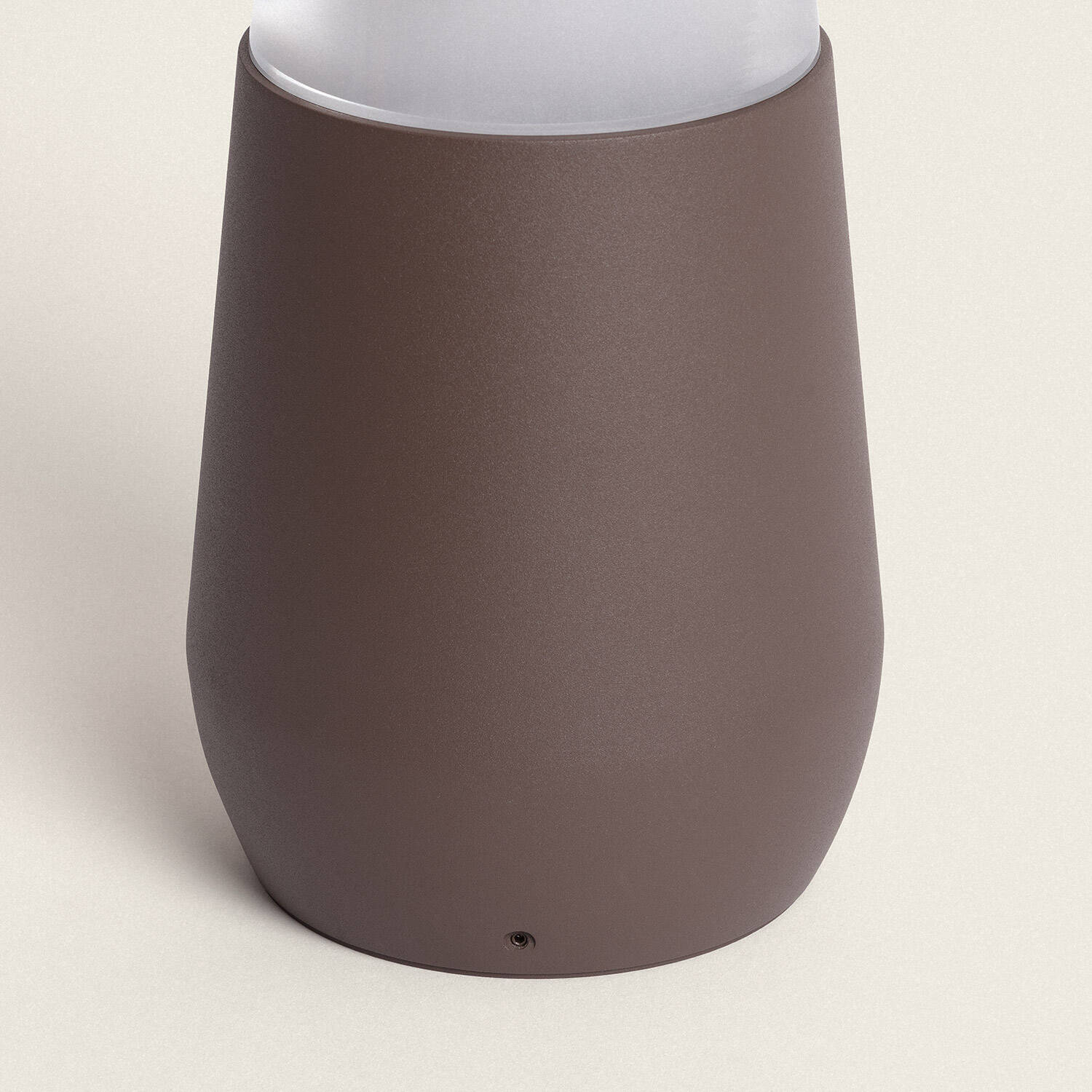 Sa hauteur de 30 cm et son diamètre maîtrisé offrent une présence discrète, adaptée aux ambiances contemporaines. La finition rouille et la silhouette conique en aluminium apportent une touche premium et s’intègrent naturellement aux matériaux extérieurs, sans surcharger l’espace paysager.