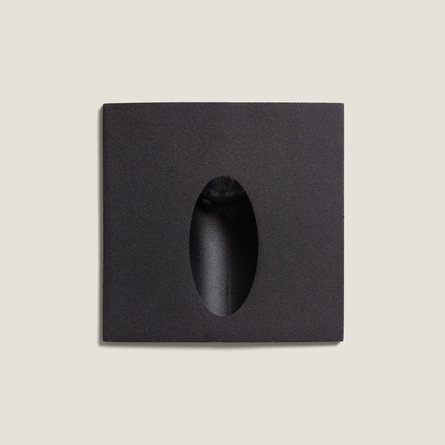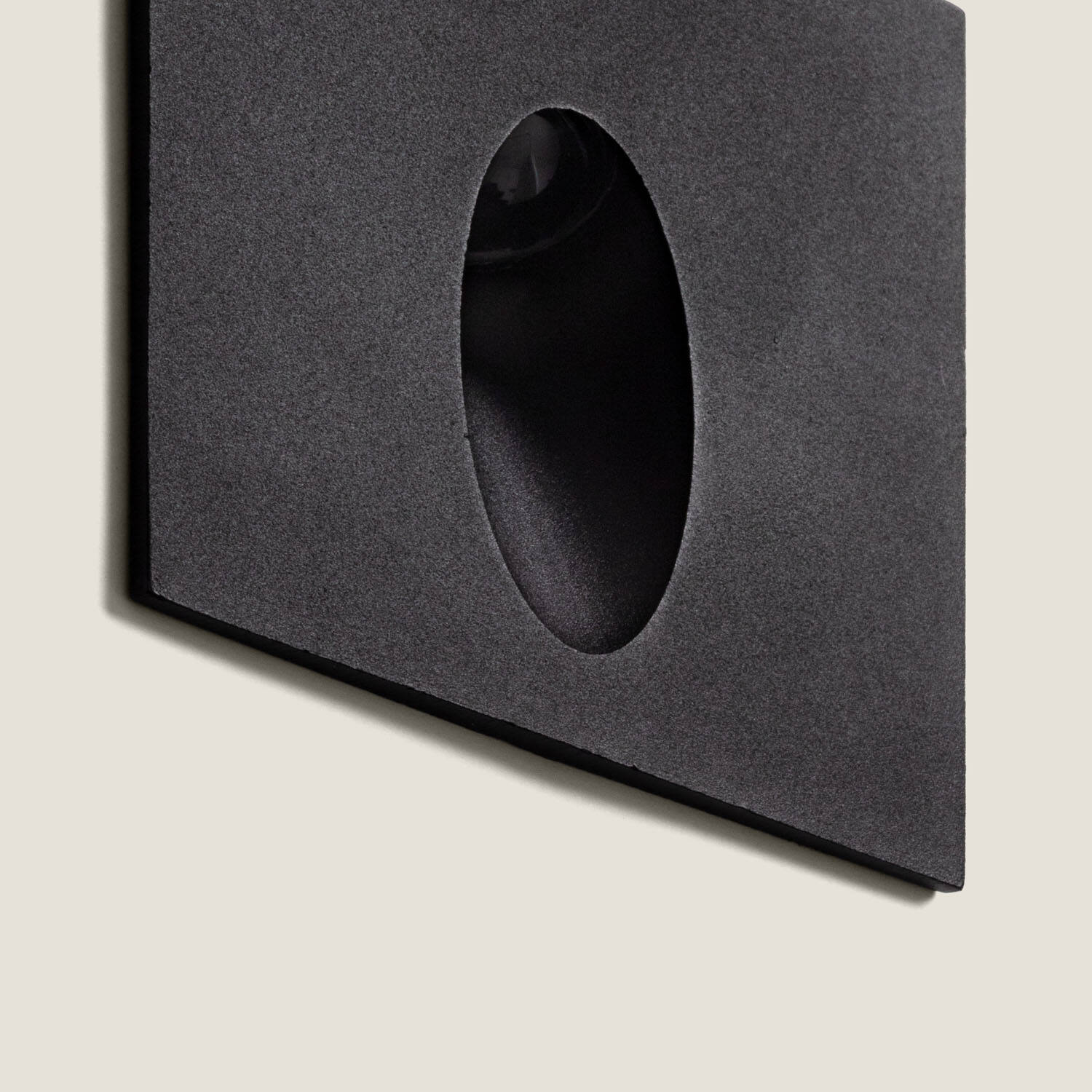 À la fois sobre et contemporain, le boîtier carré noir s’intègre discrètement aux façades. L’ouverture ovale dirige le faisceau sans éblouir, révélant les textures du mur tout en conservant une lecture nette de l’espace extérieur, idéale pour des projets exigeant précision et esthétique raffinée.