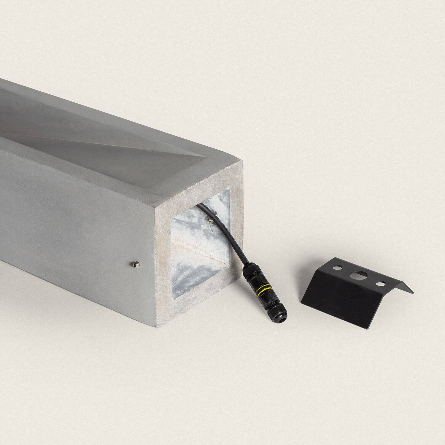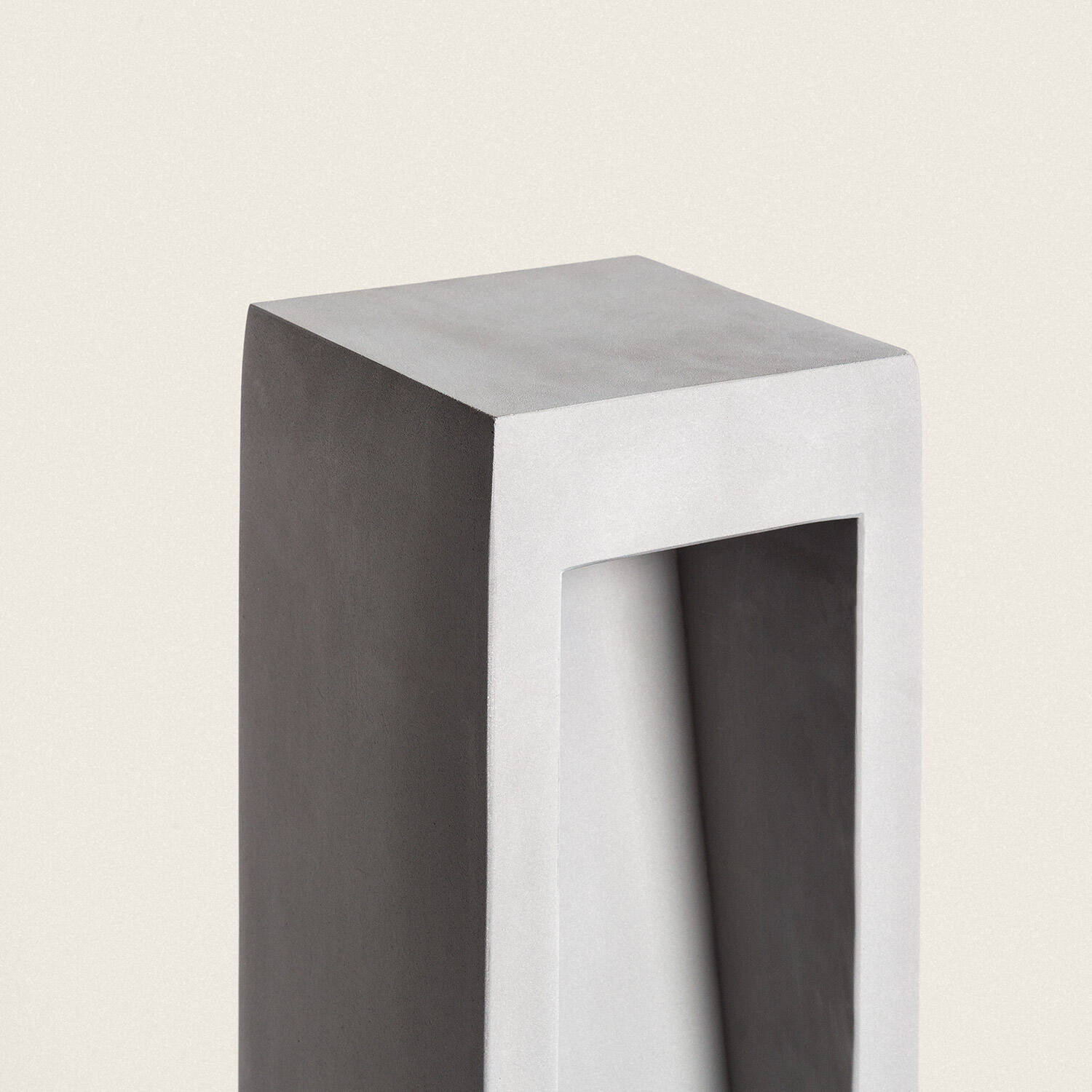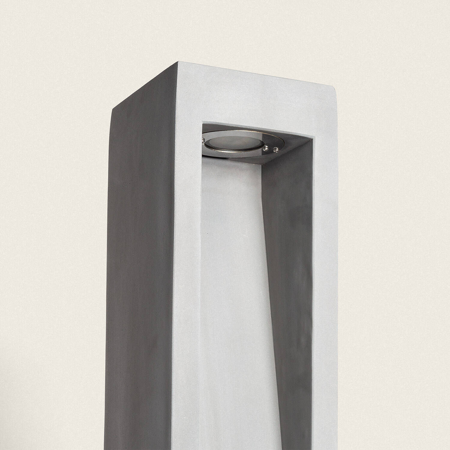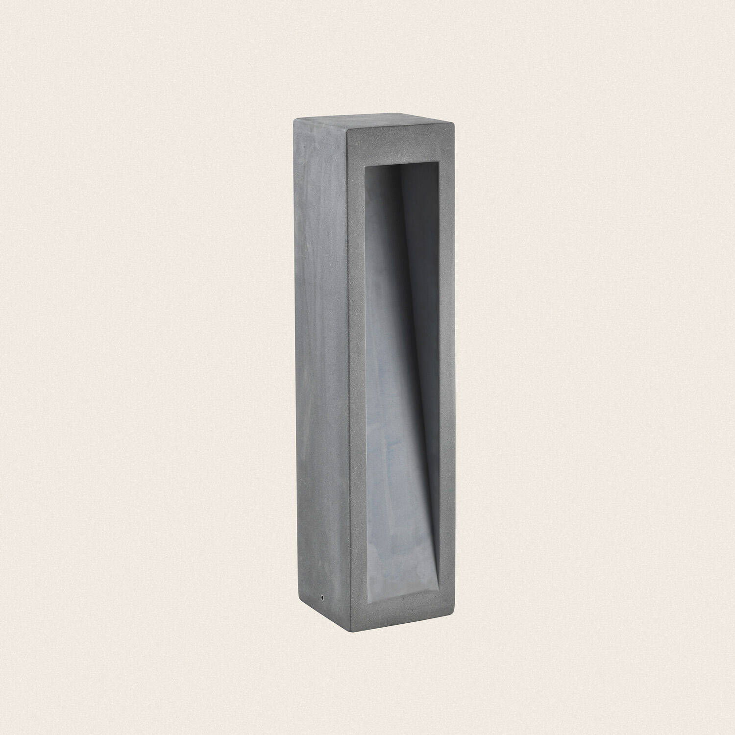 Son corps en ciment gris pierre revendique une présence sculpturale, soulignée par une ouverture centrale géométrique qui diffuse la lumière de manière raffinée. Avec 630 mm de hauteur, la balise apporte une élégance discrète et une signature contemporaine à tout aménagement extérieur.