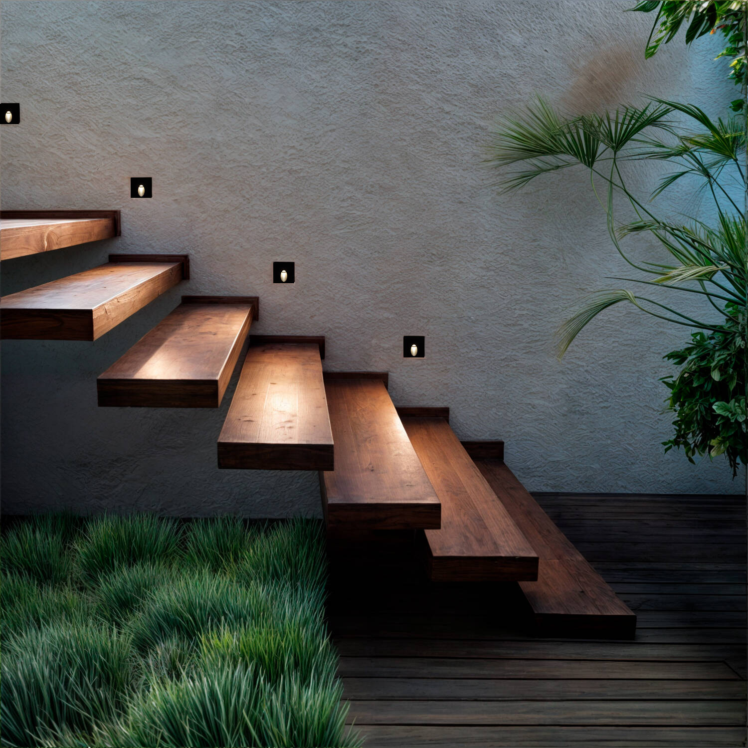 L’installation se réalise en encastrement mural, directement sur le réseau sans transformateur externe, pour une mise en œuvre propre et discrète. Son format compact facilite l’intégration dans des percements standards, offrant une solution de balisage pratique et esthétique, adaptée aux projets résidentiels et commerciaux.