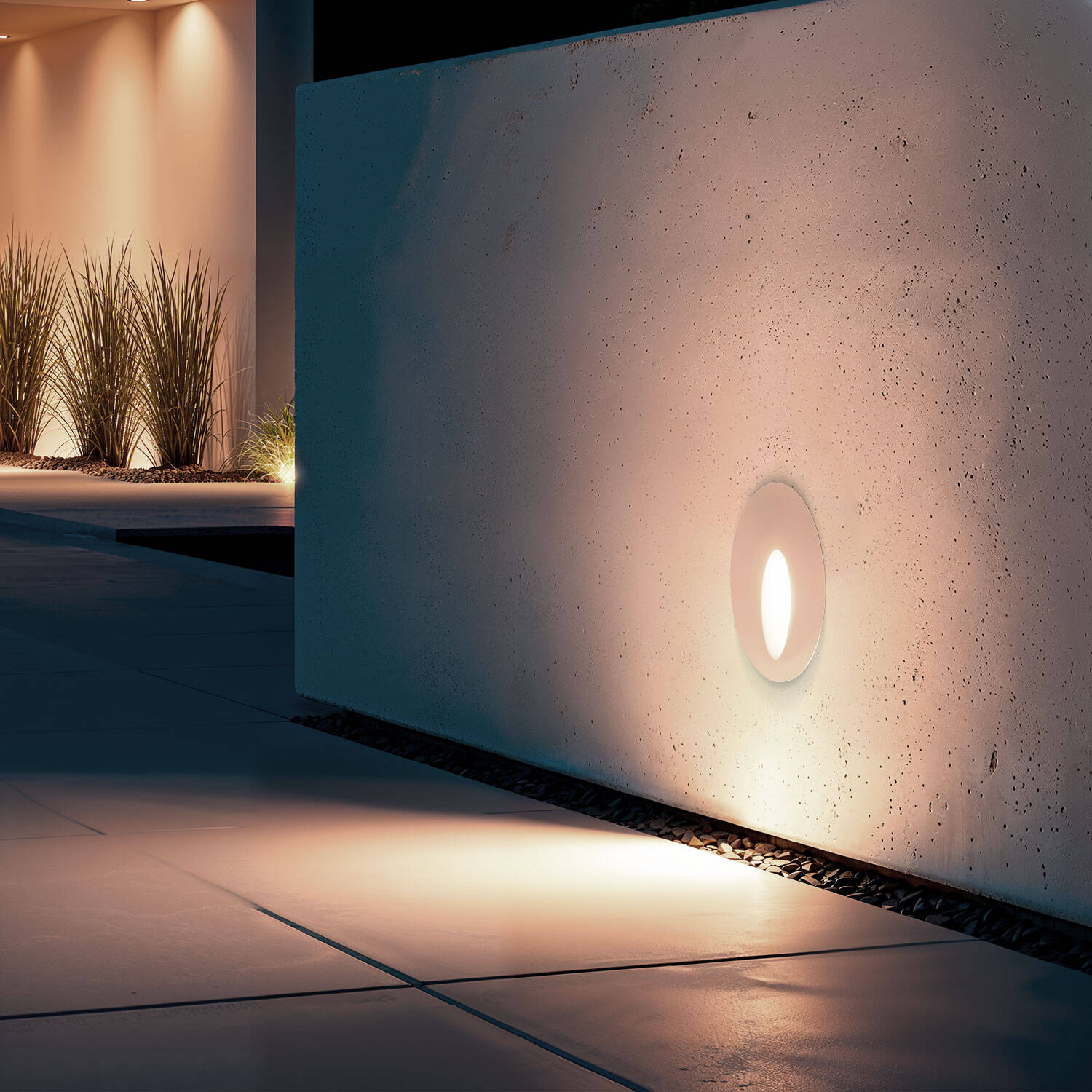 Cette balise extérieure murale LED encastrable ronde blanche diffuse un éclairage blanc chaud discret et confortable, idéal pour sécuriser escaliers, couloirs, allées et zones de passage. Son format compact en aluminium s’intègre proprement au mur, tandis que sa protection IP65 et IK08 assure une excellente tenue en extérieur.