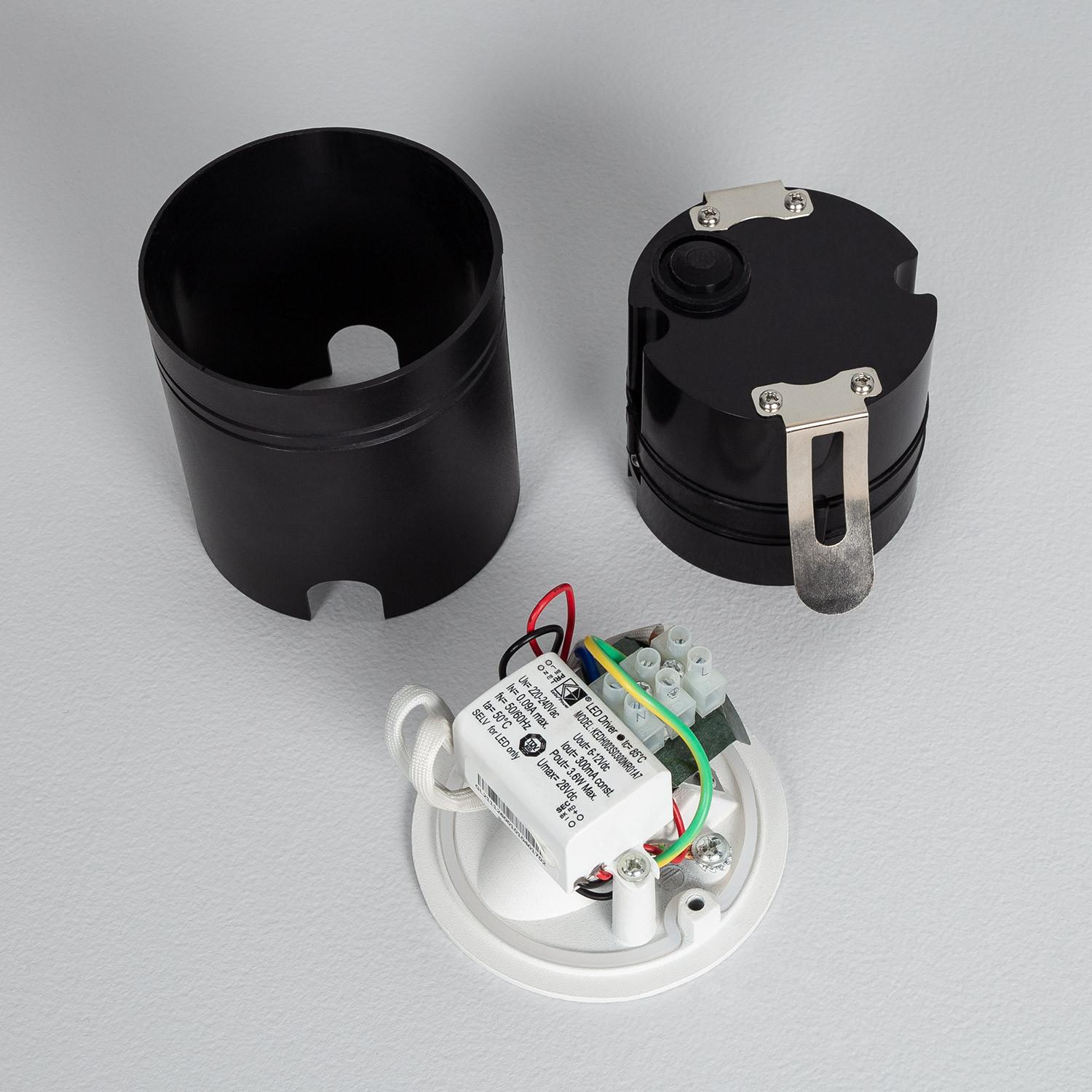 Le format encastrable au profil rond s’intègre parfaitement aux façades et murets, avec une finition blanche en aluminium qui pare l’équipement d’une allure minimaliste. Conçue pour résister aux intempéries et aux chocs, elle combine discrétion architecturale et robustesse adaptée à l’extérieur.