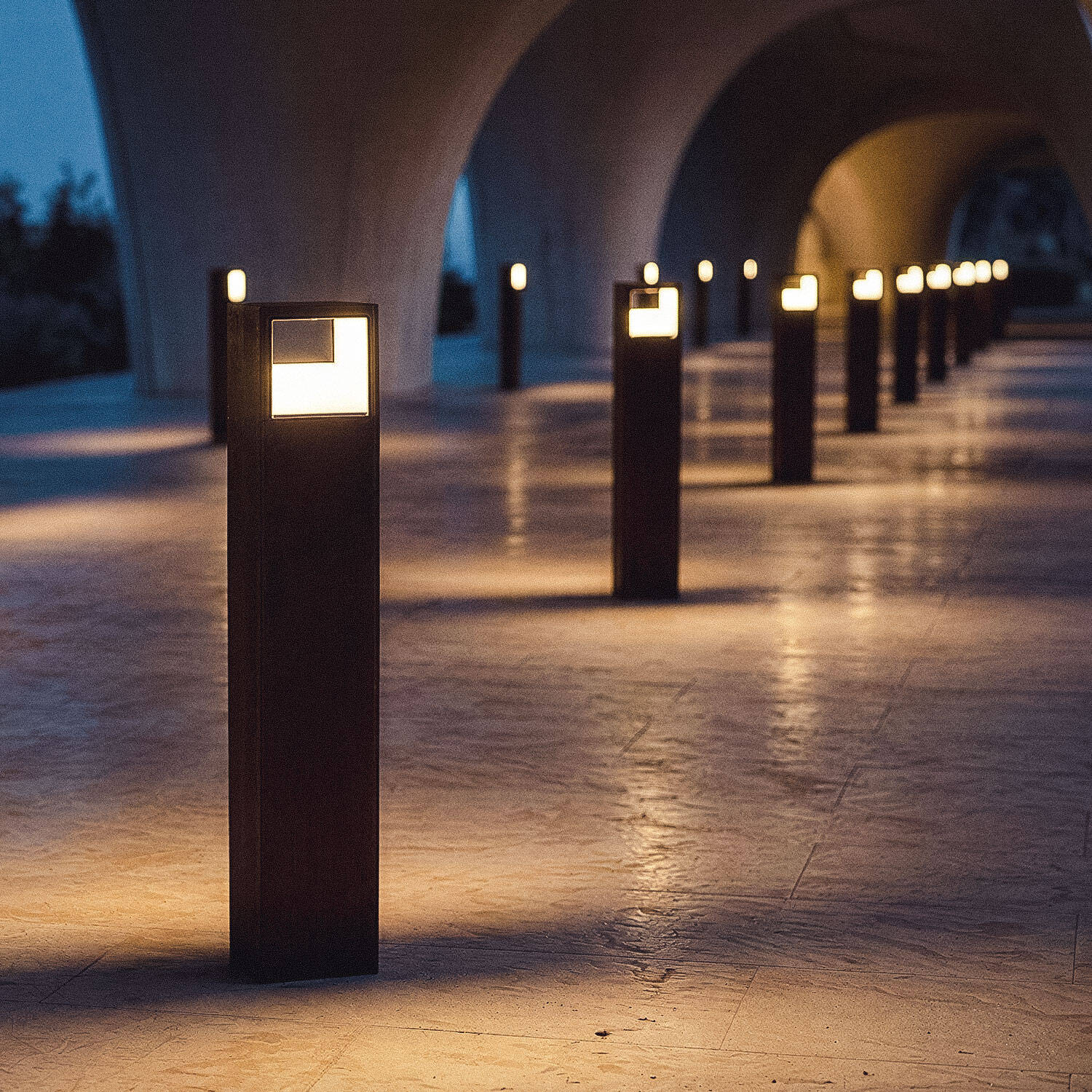 Le corps en aluminium assure légèreté et longévité, tandis que la finition rouille apporte une patine contemporaine s’intégrant aux aménagements extérieurs. Le pilote et la source COB sont remplaçables, garantissant une maintenance facilitée et une durée de vie optimisée sans compromettre l’esthétique minimaliste.