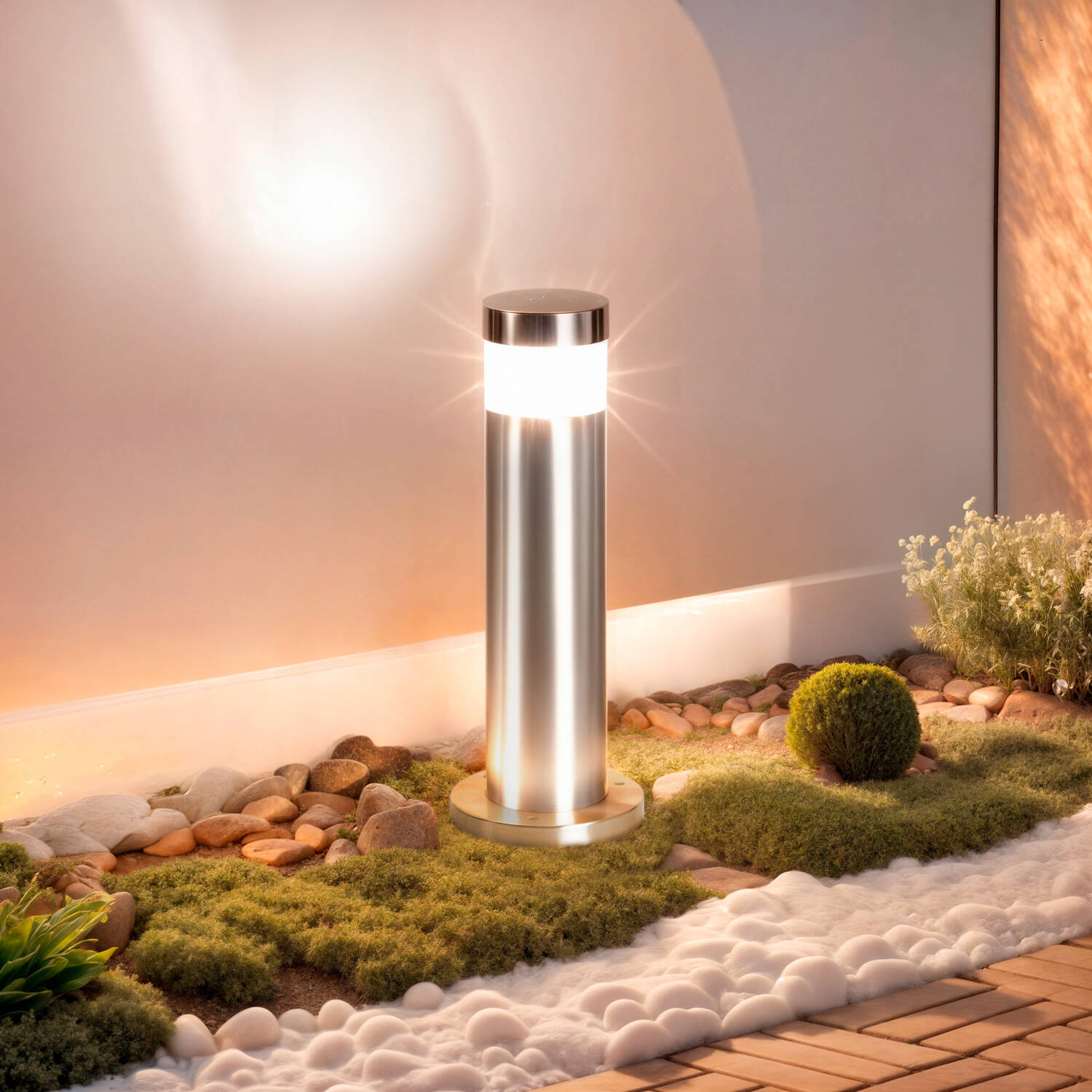L’esthétique cylindrique en acier inoxydable brossé souligne un rendu contemporain et raffiné. Avec un diamètre de 122 mm, la balise se fond dans les compositions paysagères tout en apportant une présence discrète et durable, adaptée aux architectures modernes comme aux jardins plus traditionnels.