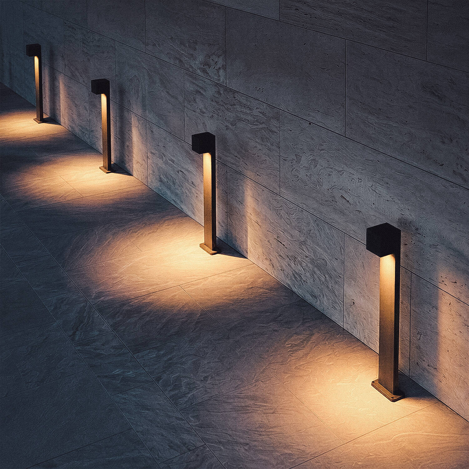 Le design minimaliste en colonne et tête cubique crée un éclairage orienté vers le sol, produisant un balisage doux et non éblouissant. Sa silhouette raffinée s’intègre aux jardins contemporains et aux espaces paysagers, pour souligner cheminements et coins de détente avec simplicité et élégance.