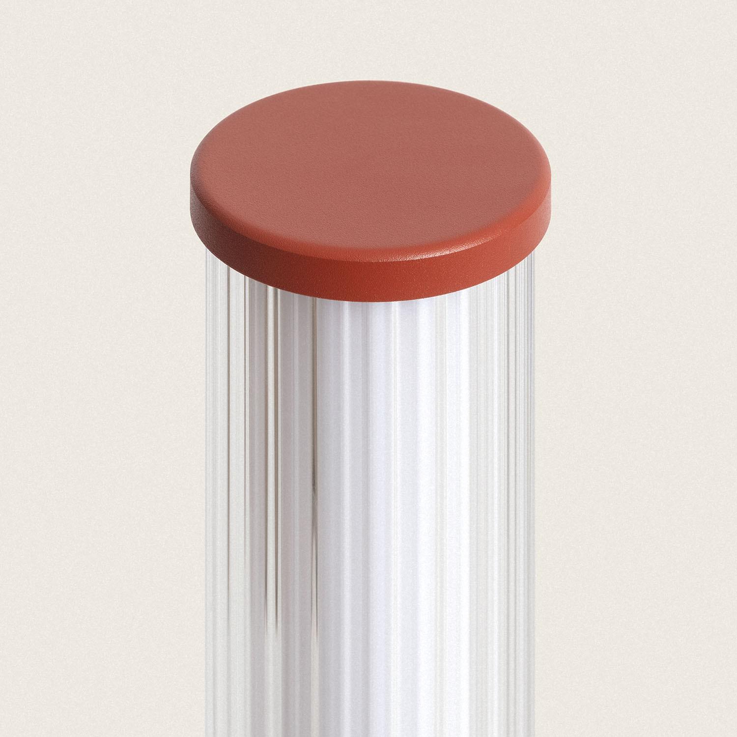 La finition sablée en aluminium, rehaussée d’une teinte terre cuite raffinée, confère un aspect contemporain aux aménagements extérieurs. L’écran en verre à ondulations verticales diffuse la lumière avec élégance, créant un rendu homogène et une ambiance chaleureuse sans éblouissement et durable.
