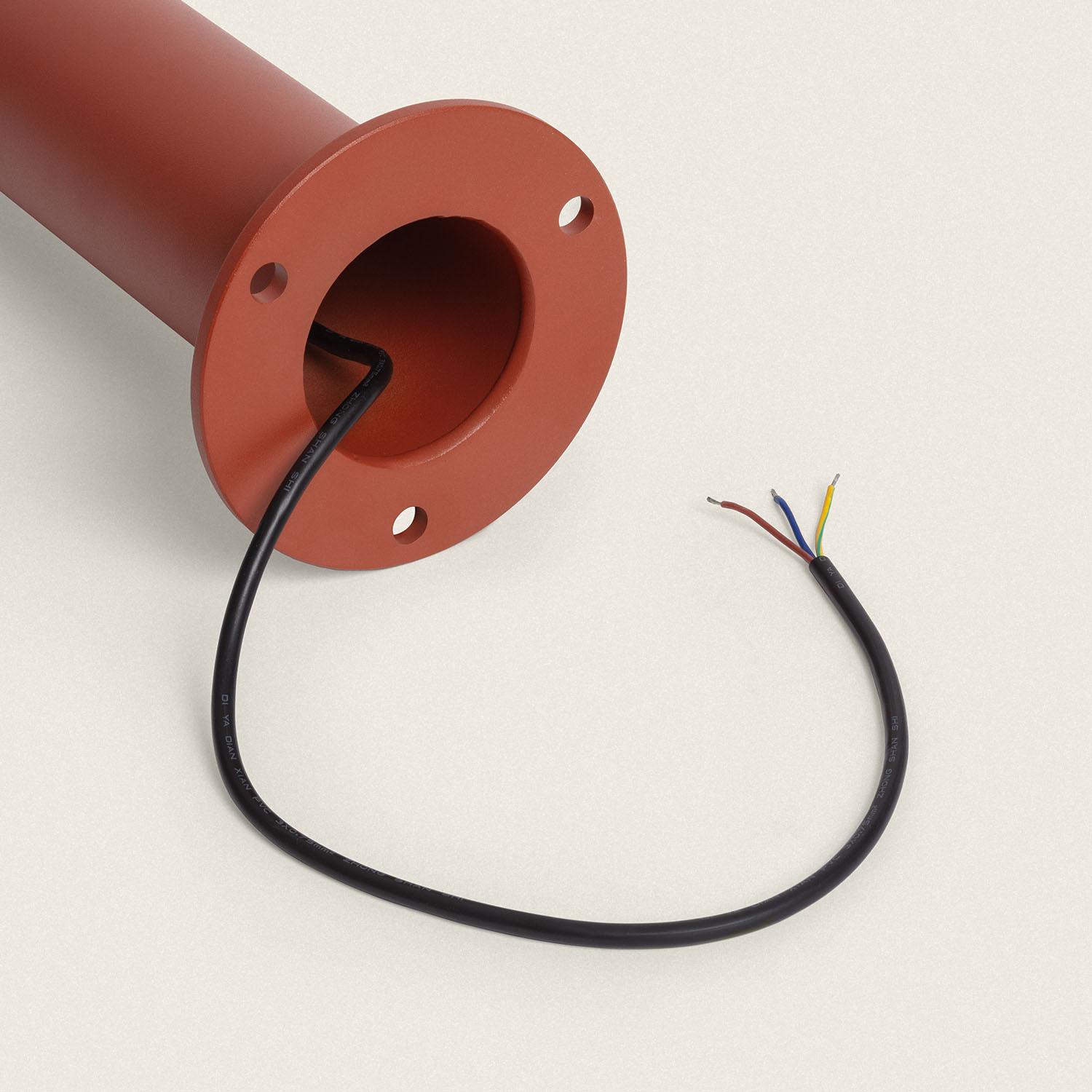 La balise est prévue pour une installation en saillie sur sol ou surface et pour un montage vertical. Fixez la platine de base à l'aide de chevilles et vis adaptées au matériau (béton, dalle, bois), faites passer le câble par l'intérieur de la colonne et réalisez le raccordement au réseau 220-240 V par un électricien qualifié. Assurez vous de couper l'alimentation avant toute intervention et d'utiliser un joint d'étanchéité autour de la platine si l'installation est exposée aux projections d'eau.