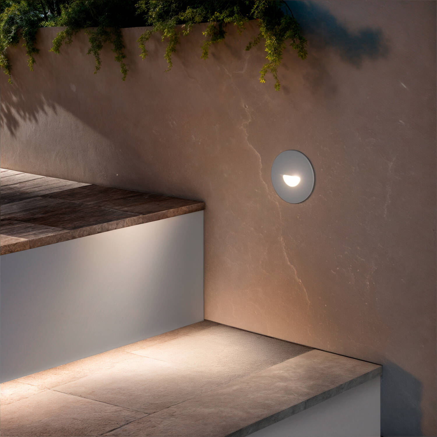 Adaptée aux jardins, allées, escaliers et entrées, la balise Guell met en valeur matériaux et textures tout en guidant le passage. Sa lumière blanc neutre et son dégagement contrôlé permettent de composer des scénarios d’ambiance harmonieux, discrets et sécurisants autour de l’habitat.