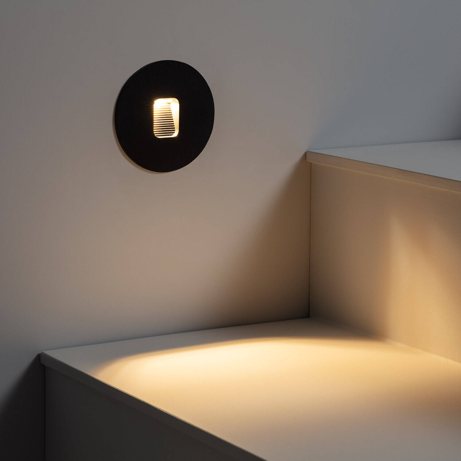 Balise LED Extérieure 2W Encastrable au Mur Ronde Olite Noire Blanc chaud 2700K