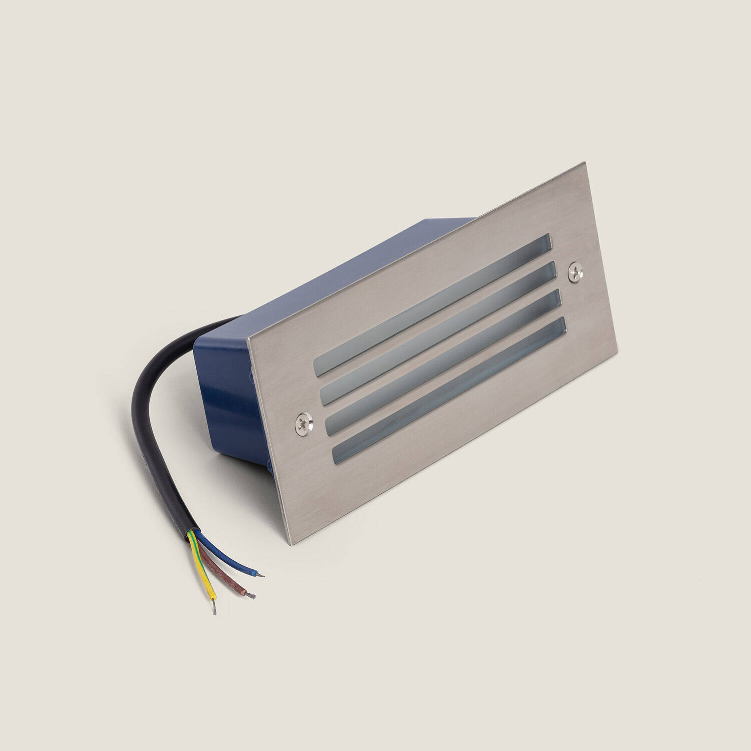 Le format encastré et la finition argent satinée en acier inoxydable assurent une intégration discrète sur façades contemporaines. Son dessin rectangulaire à lattes apporte une touche contemporaine tout en conservant une présence minimale, parfaite pour projets résidentiels et publics recherchant élégance et cohérence visuelle.