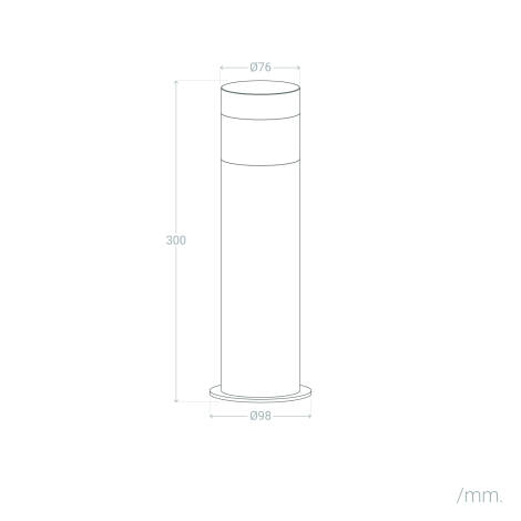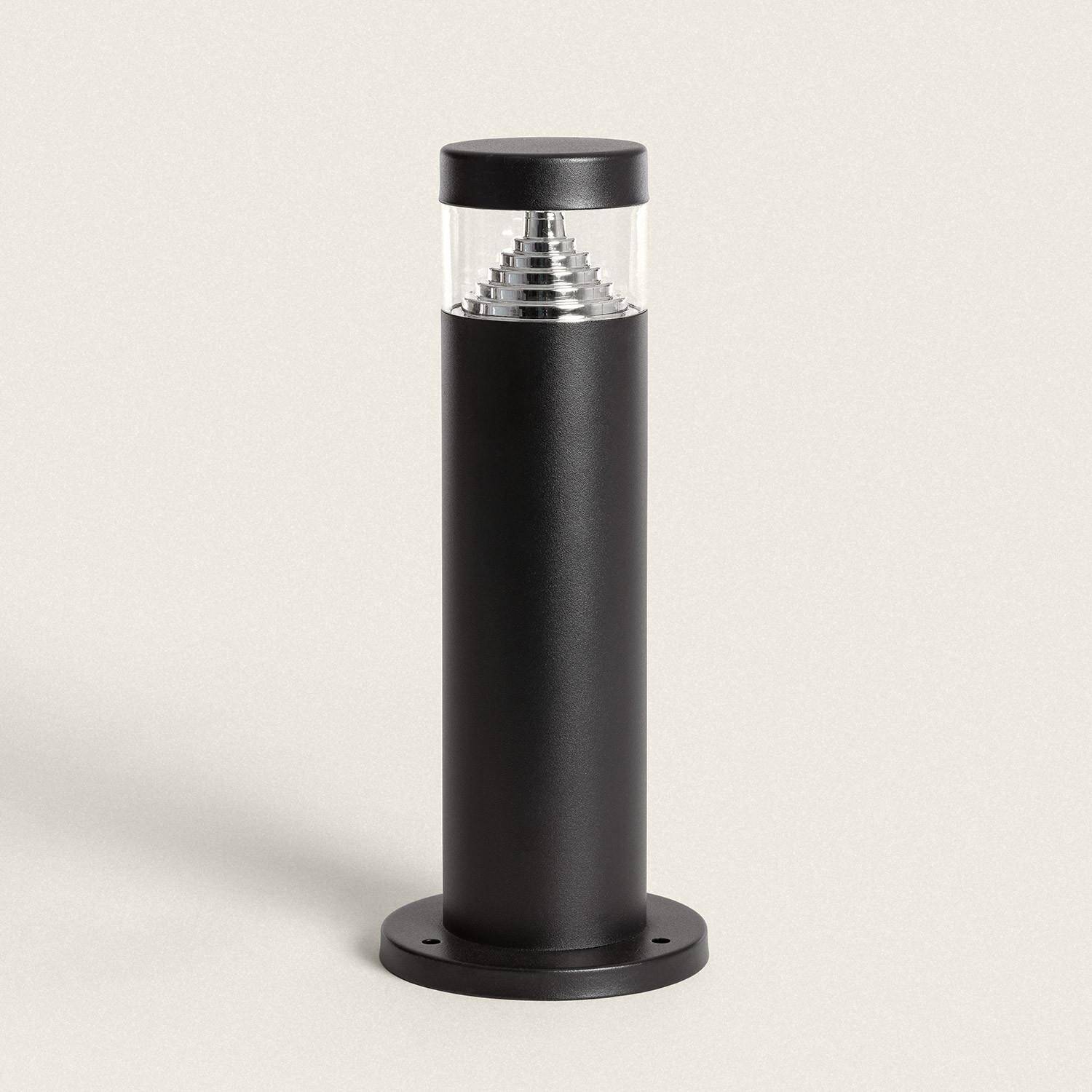 Le cylindre de 120 mm de diamètre offre un profil discret et contemporain, fini en noir mat sur acier inoxydable pour résister à la corrosion. L’indice IK06 garantit une résistance adaptée aux chocs, et la conception sur socle permet une intégration soignée sur tout type de surface.