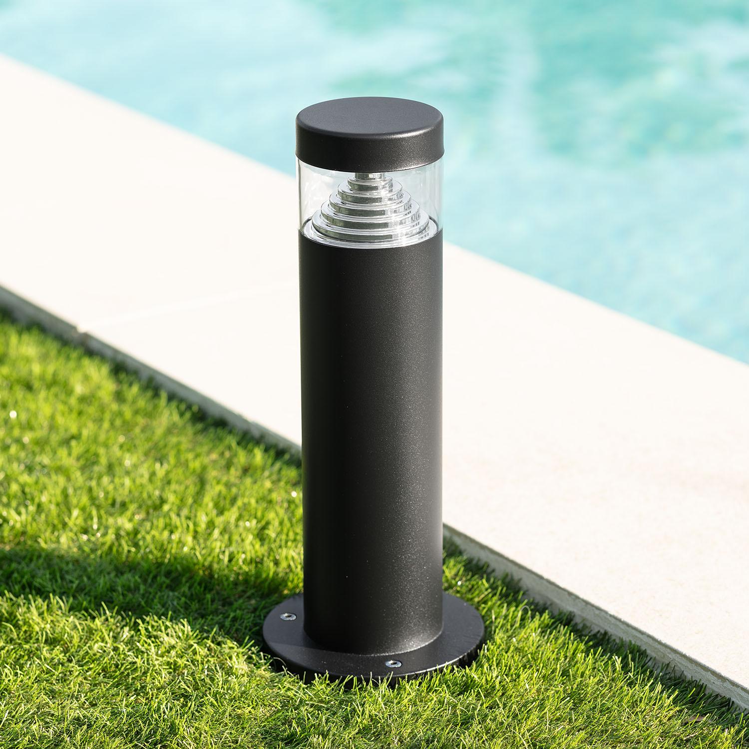 Son gabarit compact (Ø120 mm, hauteur 300 mm) et sa finition acier inoxydable noir apportent une présence discrète et moderne. Placée en bordure de piscine ou le long d’une allée, la balise donne une ligne élégante sans encombrer l’espace ni détourner l’attention du paysage.