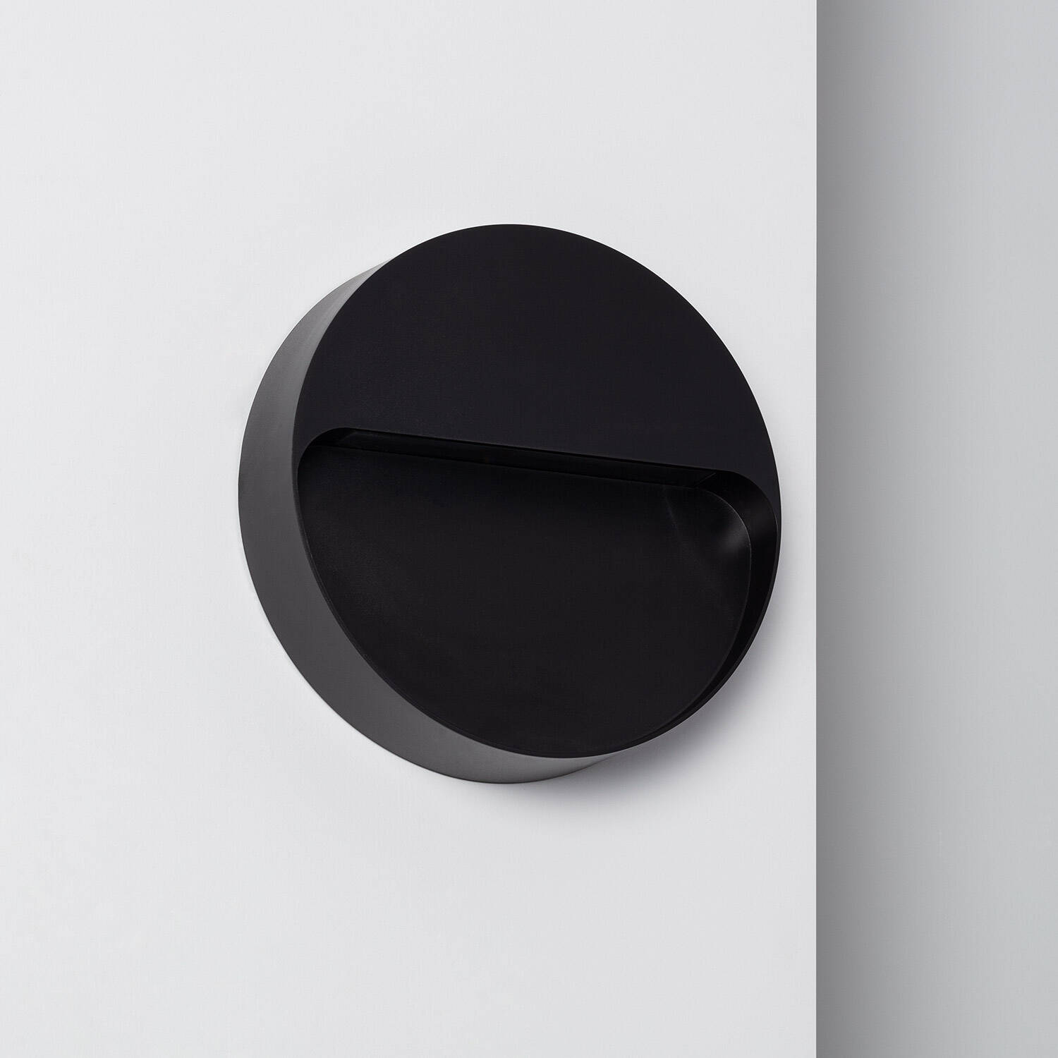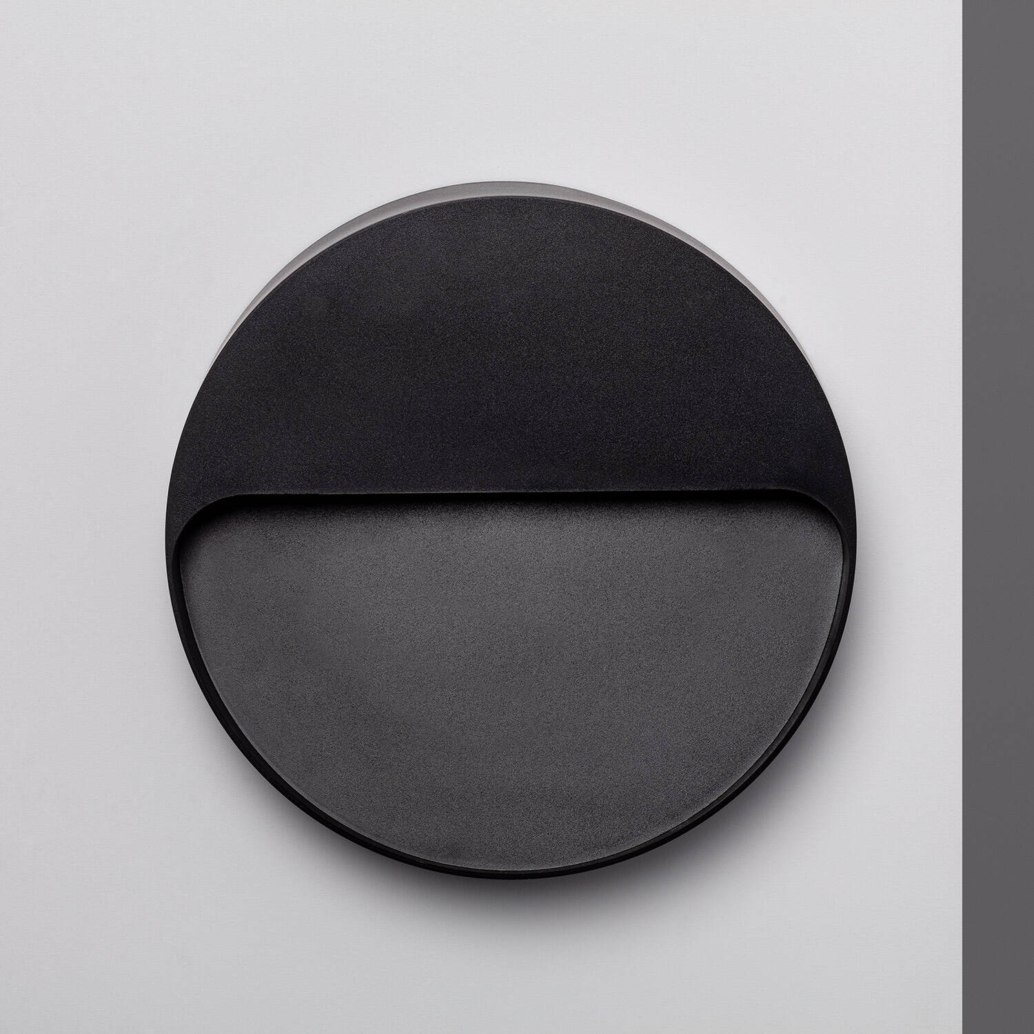 Son boîtier circulaire noir et son demi-voile de protection offrent une silhouette contemporaine et raffinée, idéale pour intégration sur murs. Les matériaux PC et ABS assurent une finition soignée, résistante aux intempéries, pour un rendu esthétique durable sans compromettre la diffusion lumineuse.