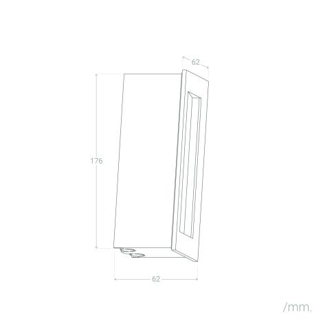 La balise mesure 176 mm de largeur, 62 mm de hauteur et 62 mm de profondeur. Pour l'encastrement prévoir un logement d'environ 176 mm de large par 62 mm de haut et 62 mm de profondeur afin d'accueillir le boîtier et le driver visibles sur les photos. Le raccordement se fait sur une alimentation 220-240V AC, et nous recommandons une installation par un électricien qualifié.