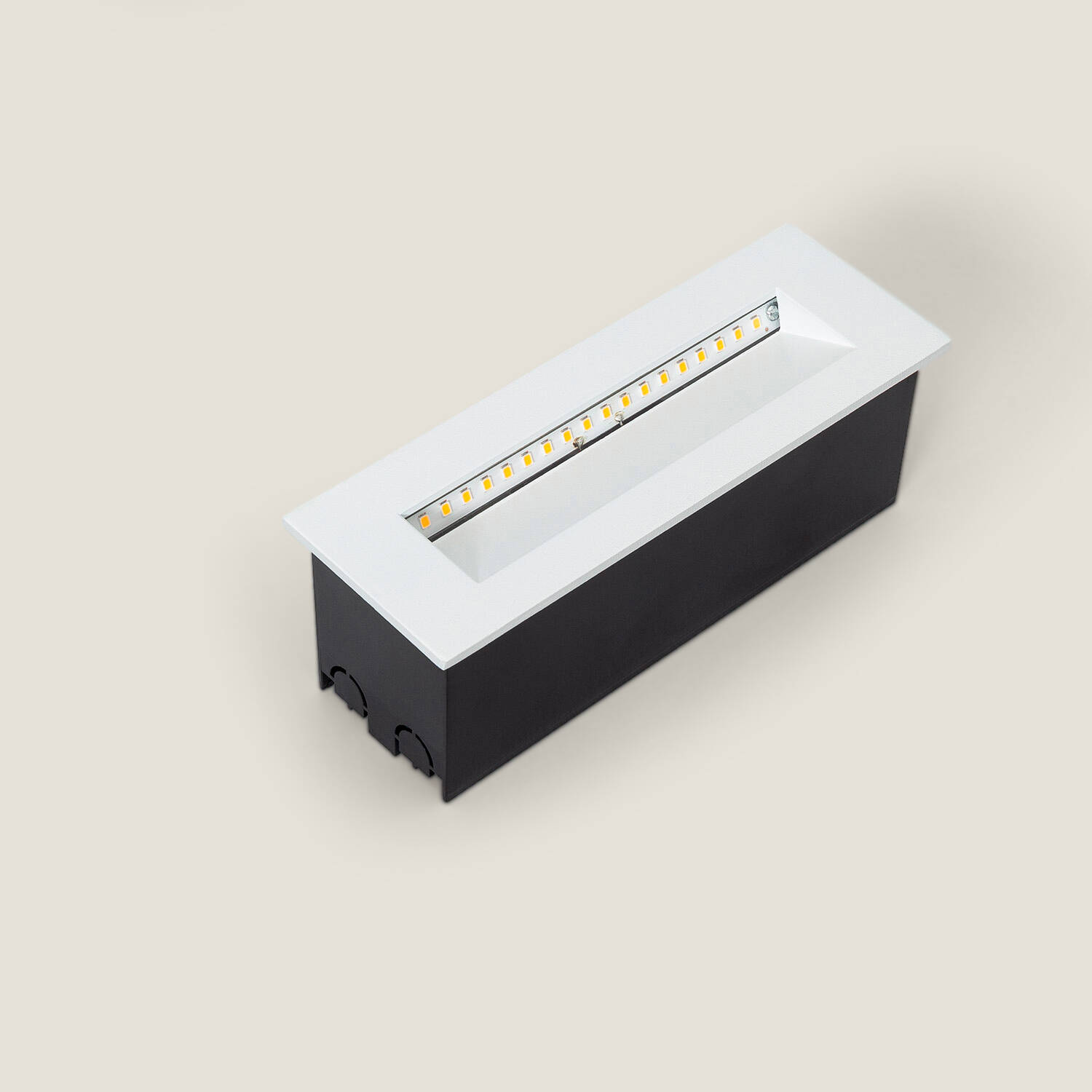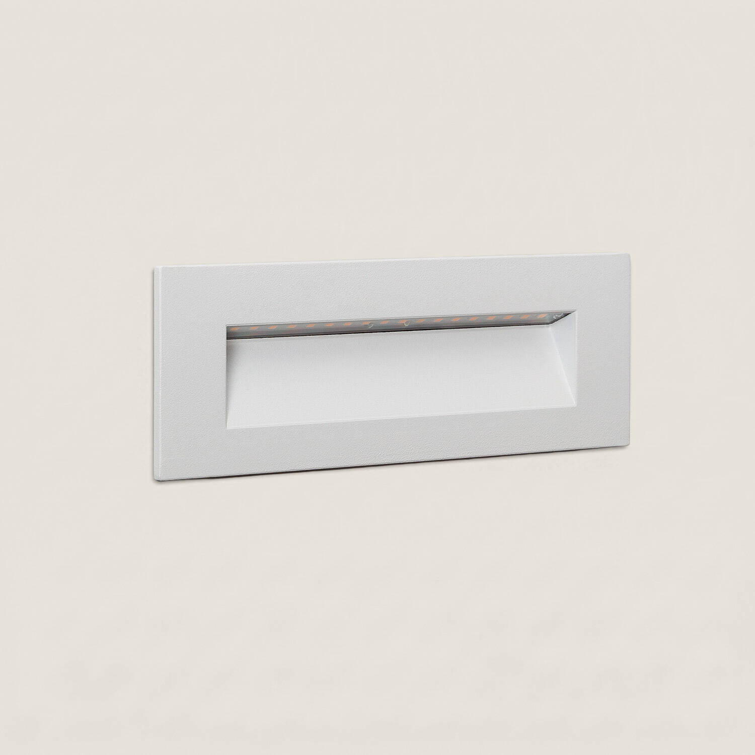 La balise émet une lumière blanc neutre 4000K pour un rendu naturel, avec une luminosité de 360 lm et un angle d'ouverture de 120º. Son design encastré et directionnel offre un éclairage discret et uniforme idéal pour baliser des marches, des allées ou créer des accents architecturaux.
