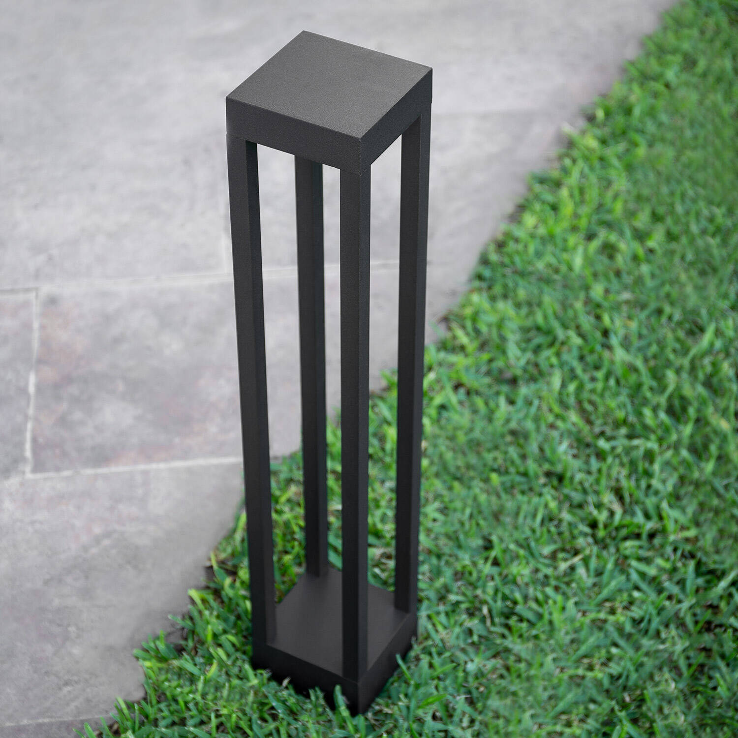 Son esthétique rectiligne et sa finition noire s’intègrent naturellement à tout aménagement extérieur contemporain. Conçue en aluminium résistant, la balise se fond dans les allées, patios et massifs, apportant une touche architecturale discrète tout en restant suffisamment robuste pour un usage extérieur quotidien.