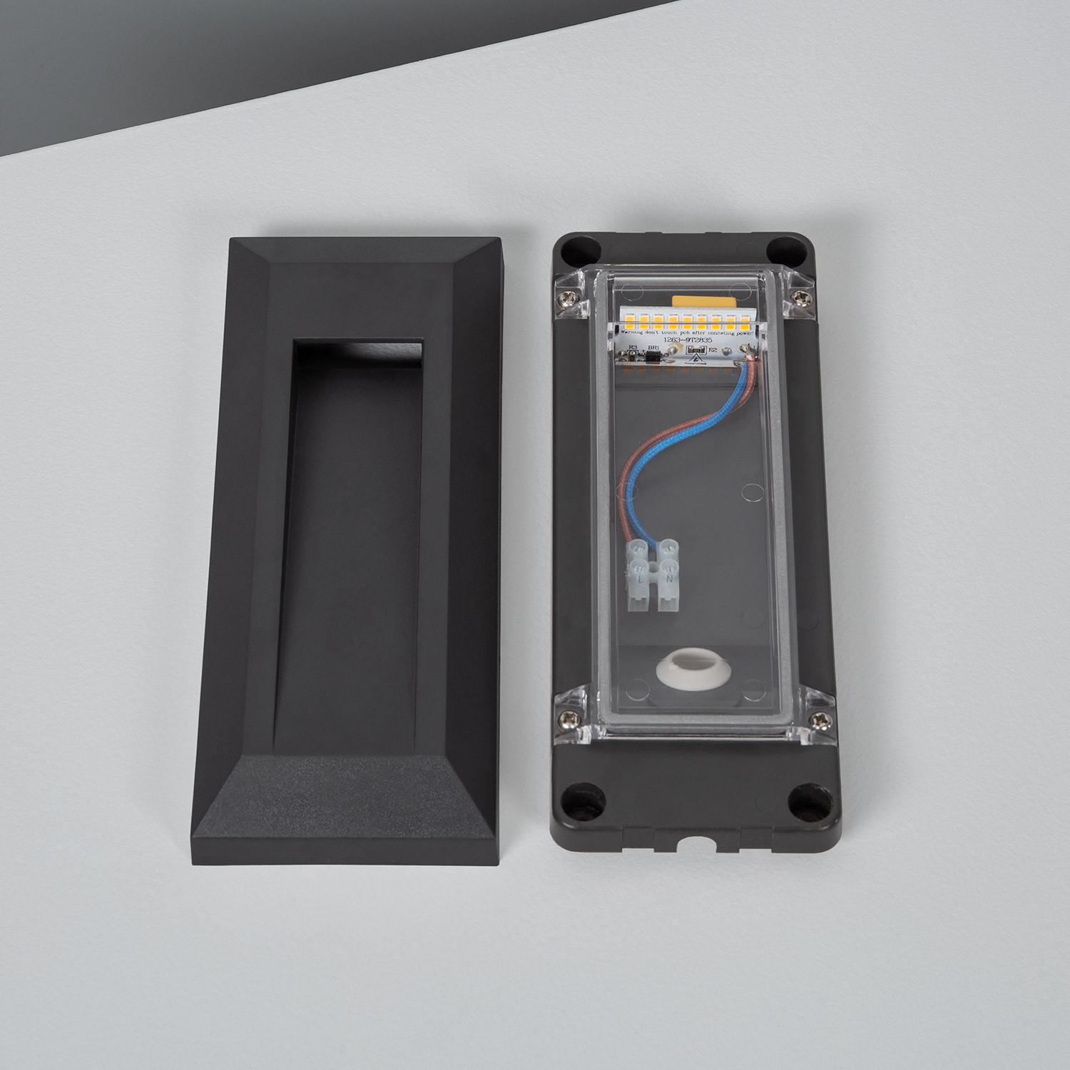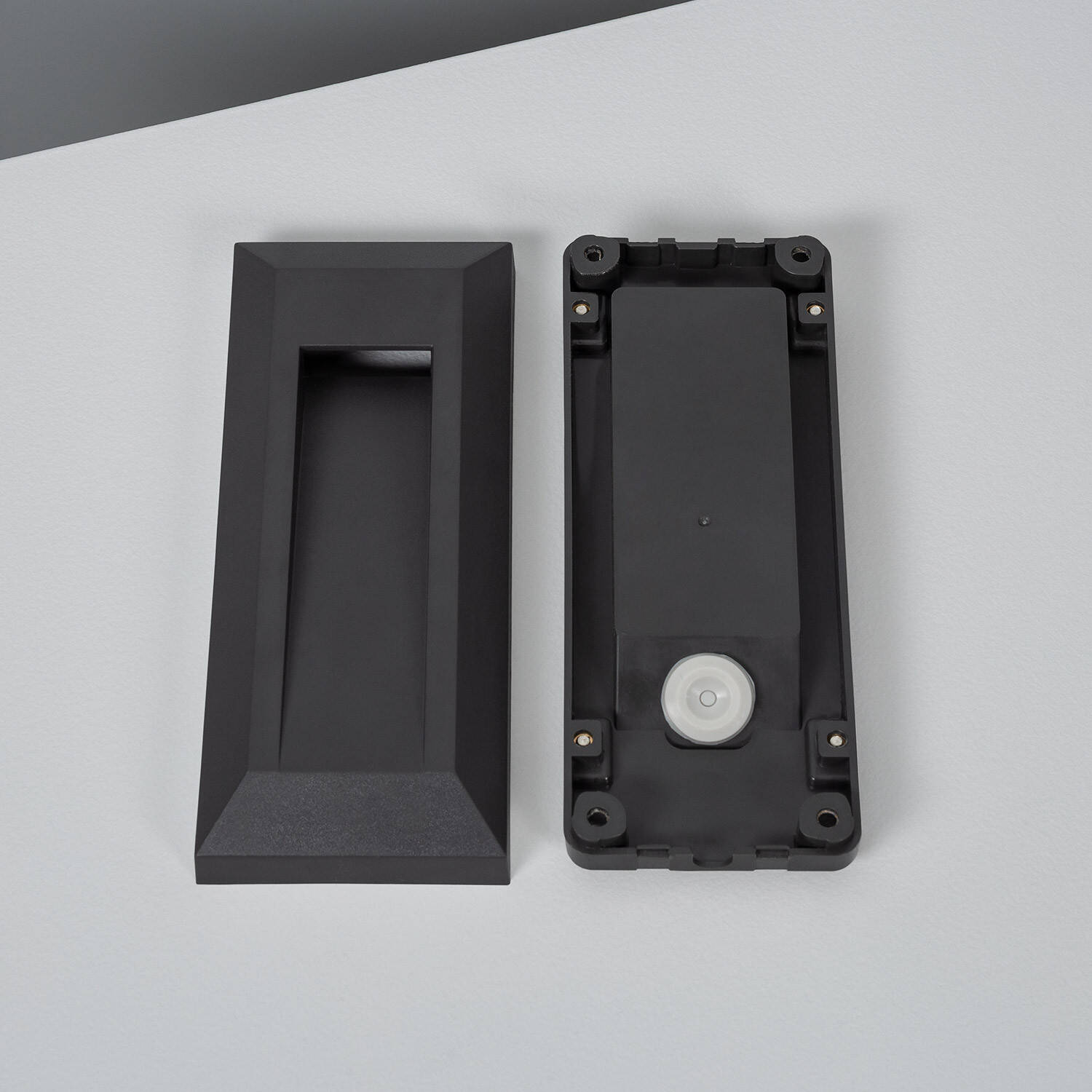 Son format rectangulaire aux lignes épurées s’intègre naturellement aux architectures modernes. La finition noire mate met en valeur la façade sans détourner l’attention. Faible encombrement et profondeur contenue garantissent une présence discrète qui sublime l’espace extérieur sans compromettre l’esthétique élégante.