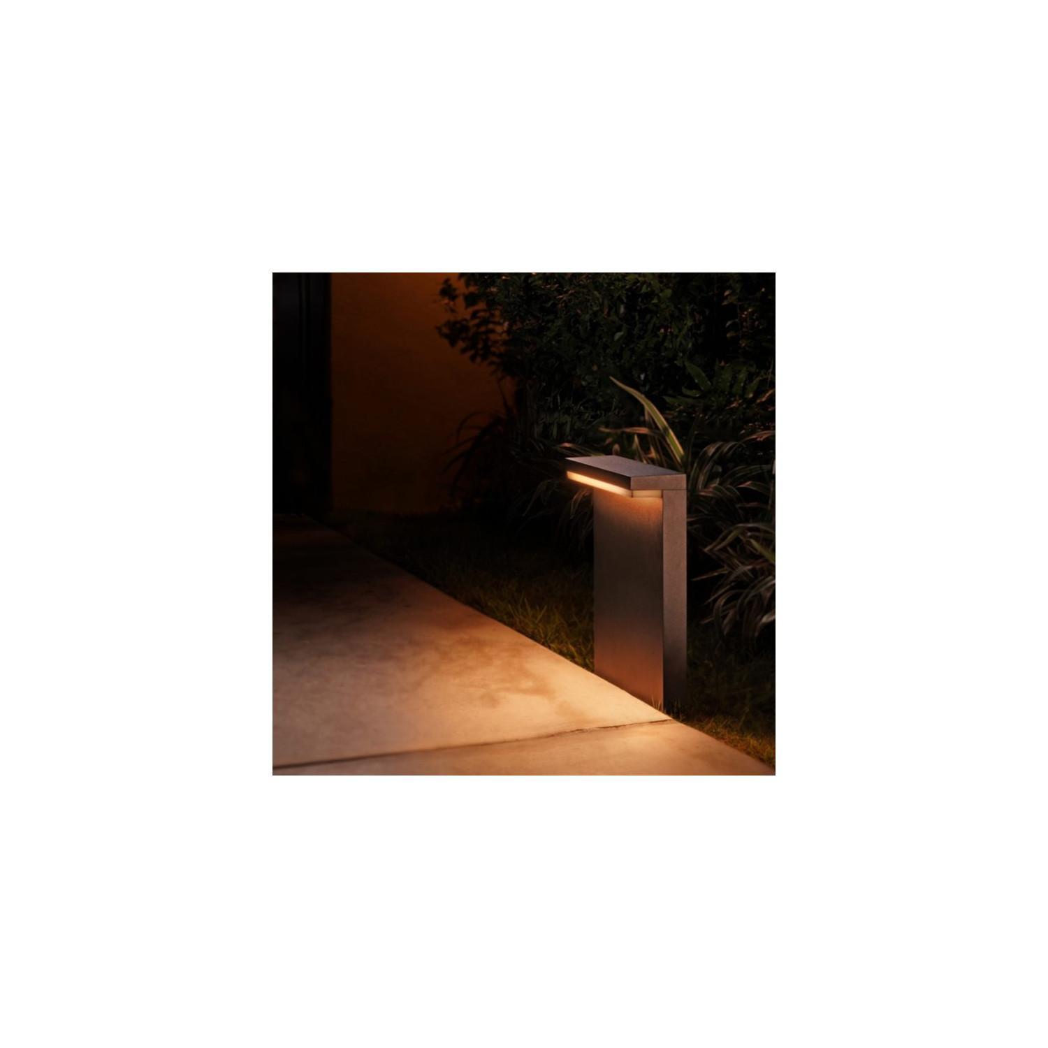 La Balise LED Extérieure RGBW 13.5W en Saillie sur Pied 40cm White Color Nyro PHILIPS Hue offre un éclairage extérieur connecté, précis et raffiné pour allées, terrasses et massifs. Son design compact en métal noir sublime vos aménagements tout en s’intégrant simplement à votre installation Philips Hue.