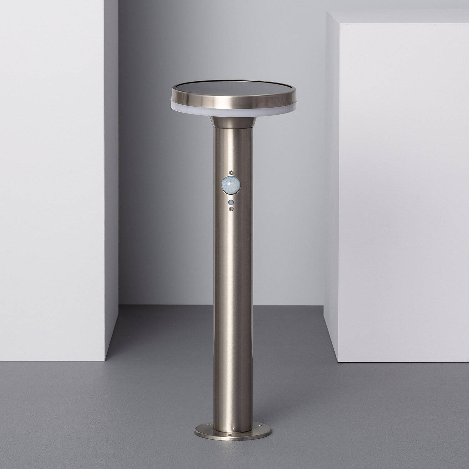 Balise LED Solaire Extérieure Helios Inox 6W en Saillie sur Pied 45cm avec Détecteur de Mouvement Helios Inox Blanc neutre 4000K