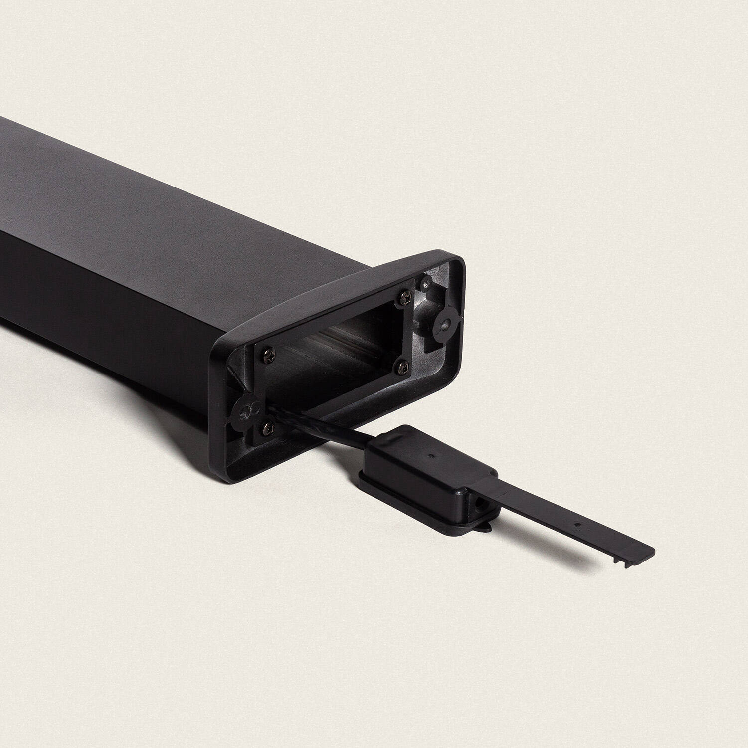 Coupez l'alimentation avant toute intervention. Nettoyez le boîtier en aluminium avec un chiffon doux et de l'eau savonneuse, rincez et séchez immédiatement. N'utilisez pas de solvants agressifs ni d'abrasifs qui pourraient endommager la finition noire. Contrôlez régulièrement les joints et le passage de câble dans la base pour garantir l'étanchéité.