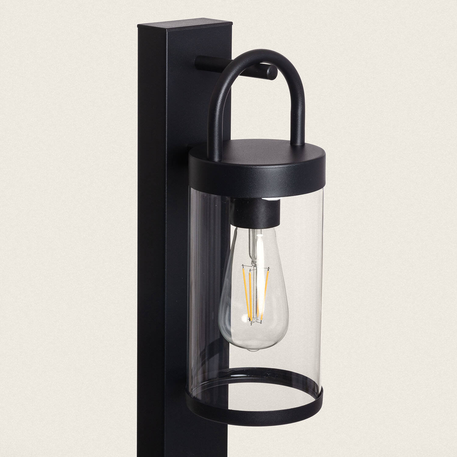 La silhouette élancée de 100 cm et le diffuseur en verre transparent créent un point lumineux à la fois discret et architectural. Le fini noir met en valeur le design simple et contemporain, offrant un rendu visuel sobre qui s’intègre à tous types d’aménagements extérieurs et intérieurs.