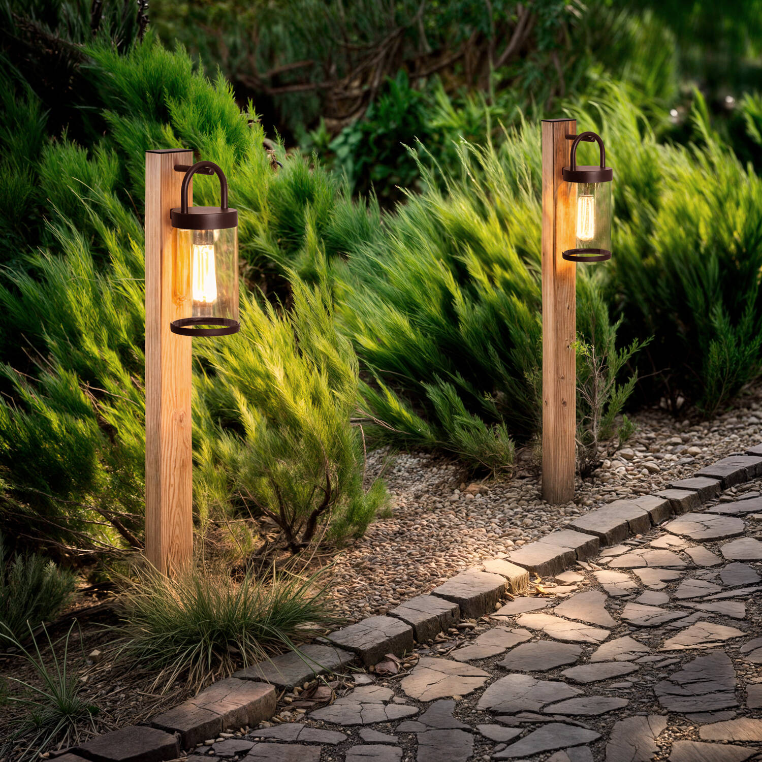 Son esthétique minimaliste associe une silhouette verticale à une lanterne en verre clair, créant un point lumineux gracieux sans surcharge visuelle. La teinte brun clair s’intègre naturellement dans les plantations et allées, apportant chaleur et élégance tout en respectant une ligne contemporaine et raffinée.