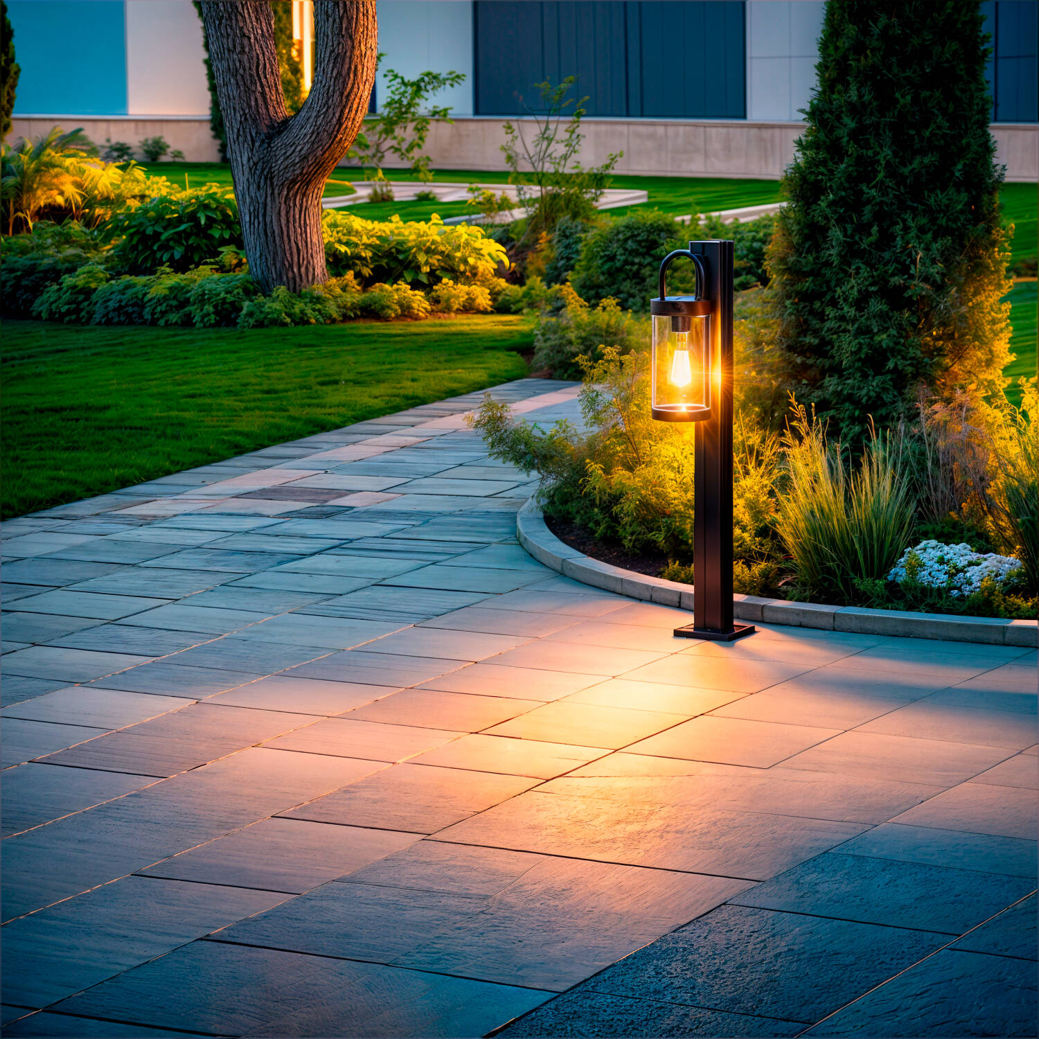 Le cadran en verre cylindrique et l’arceau discret créent une lanterne contemporaine qui sublime les extérieurs sans les surcharger. La finition noire mate met en valeur les volumes et s’harmonise avec tout type d’aménagement paysager ou architecture moderne, pour un rendu à la fois sobre et sophistiqué.