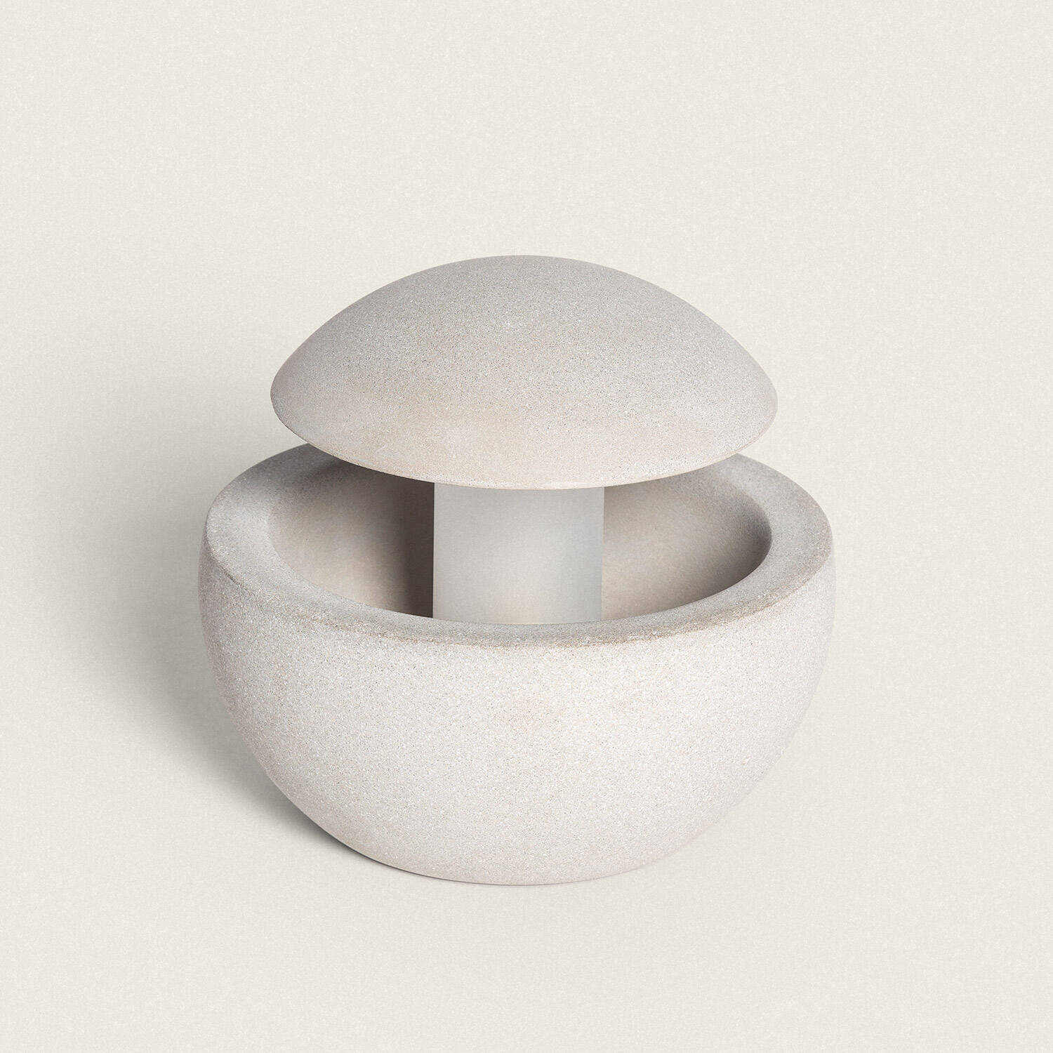 Le corps en ciment offre une texture minérale et une teinte gris pierre qui s’intègre naturellement aux architectures épurées. Sa silhouette arrondie joue avec les volumes, apportant à la fois stabilité visuelle et élégance discrète, idéale pour souligner matériaux bruts et aménagements paysagers modernes.