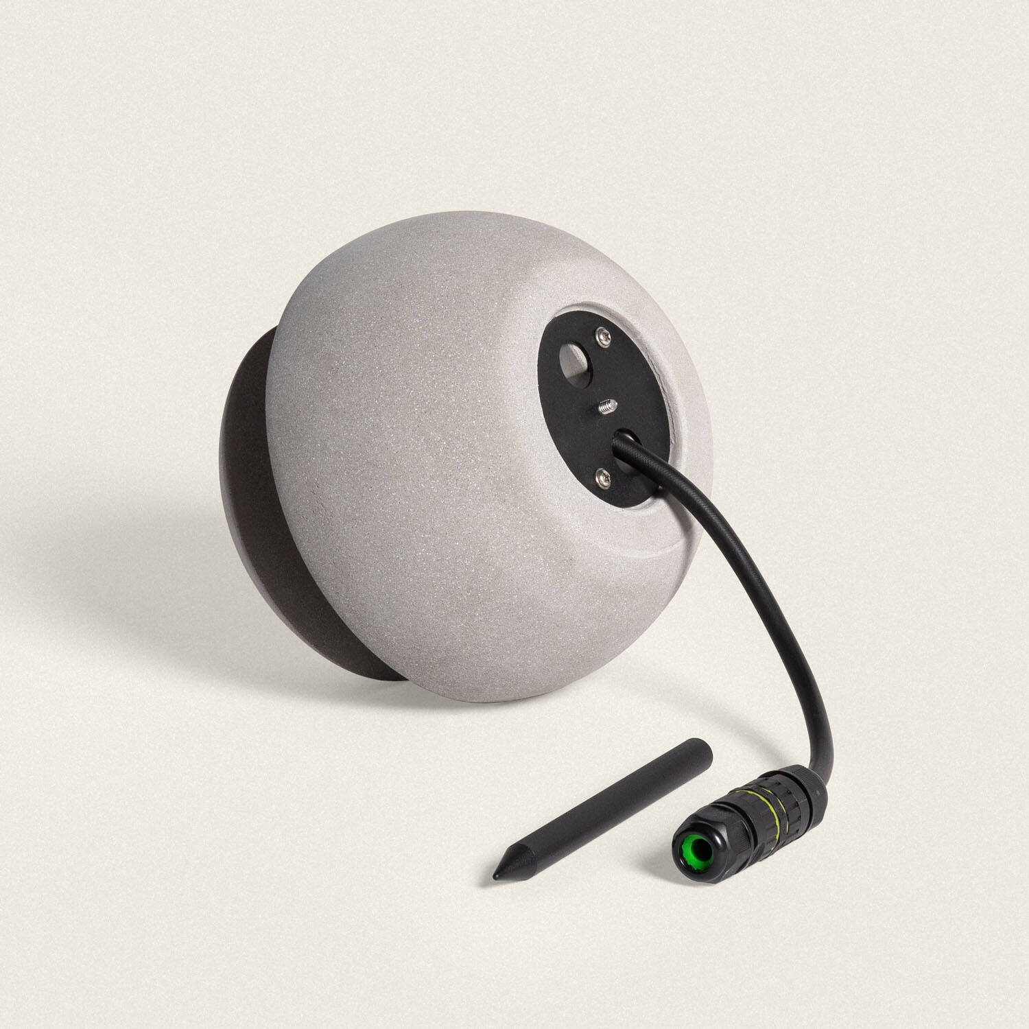 La balise sur pied Extérieure Ciment Ovinta s'installe en surface et se pose facilement sur pelouse, bordure ou terrasse. L'image produit montre le câble avec connecteur et un pic de fixation pour stabiliser l'appareil au sol. Pour un branchement sur le réseau 220-240V AC ou pour raccorder plusieurs unités, faites intervenir un électricien afin de respecter la sécurité et la réglementation électrique.