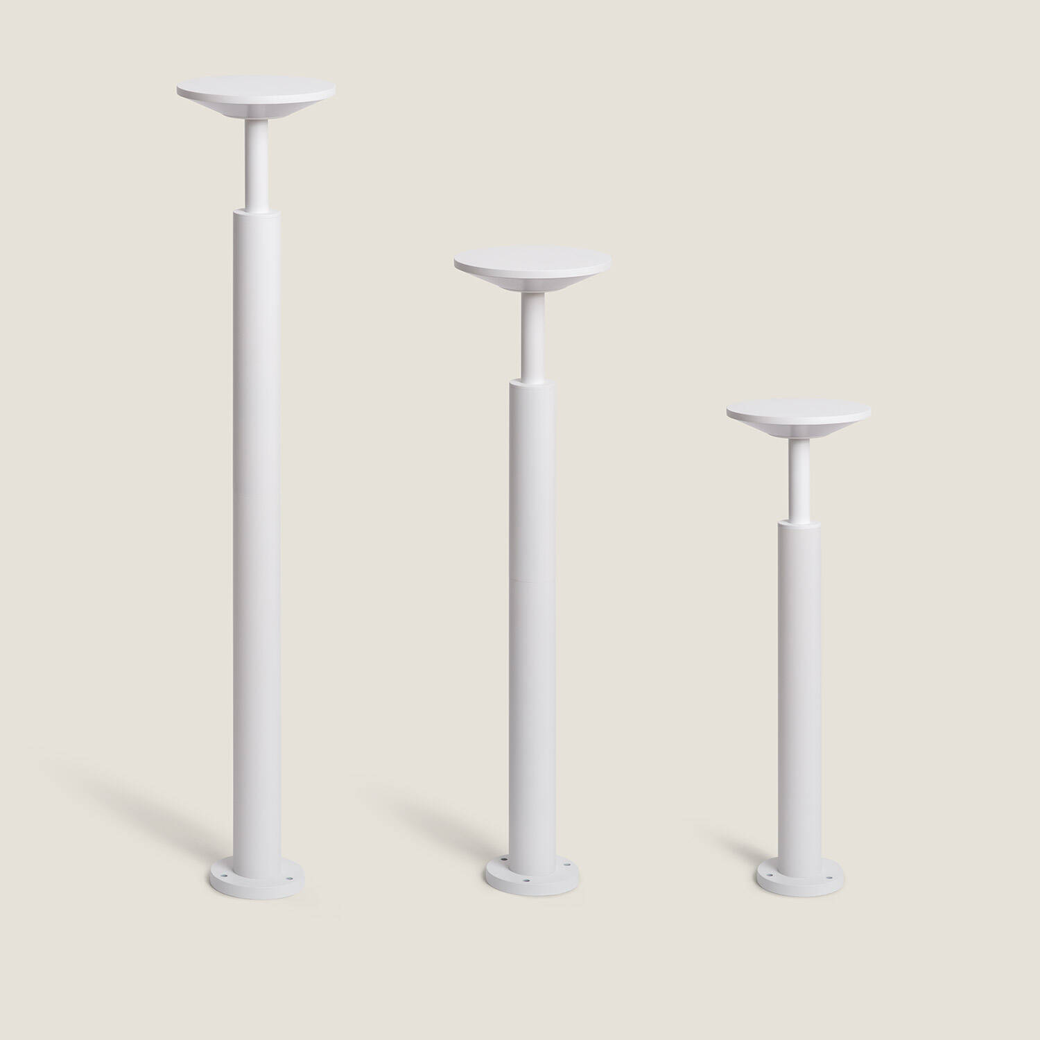 Un corps en aluminium laqué blanc confère à la Lhasa une silhouette épurée et résistante, tandis que son diffuseur en polycarbonate préserve une diffusion uniforme. Son plateau circulaire minimaliste s’intègre discrètement aux aménagements paysagers contemporains, valorisant allées, entrées et terrasses sans surcharge visuelle.