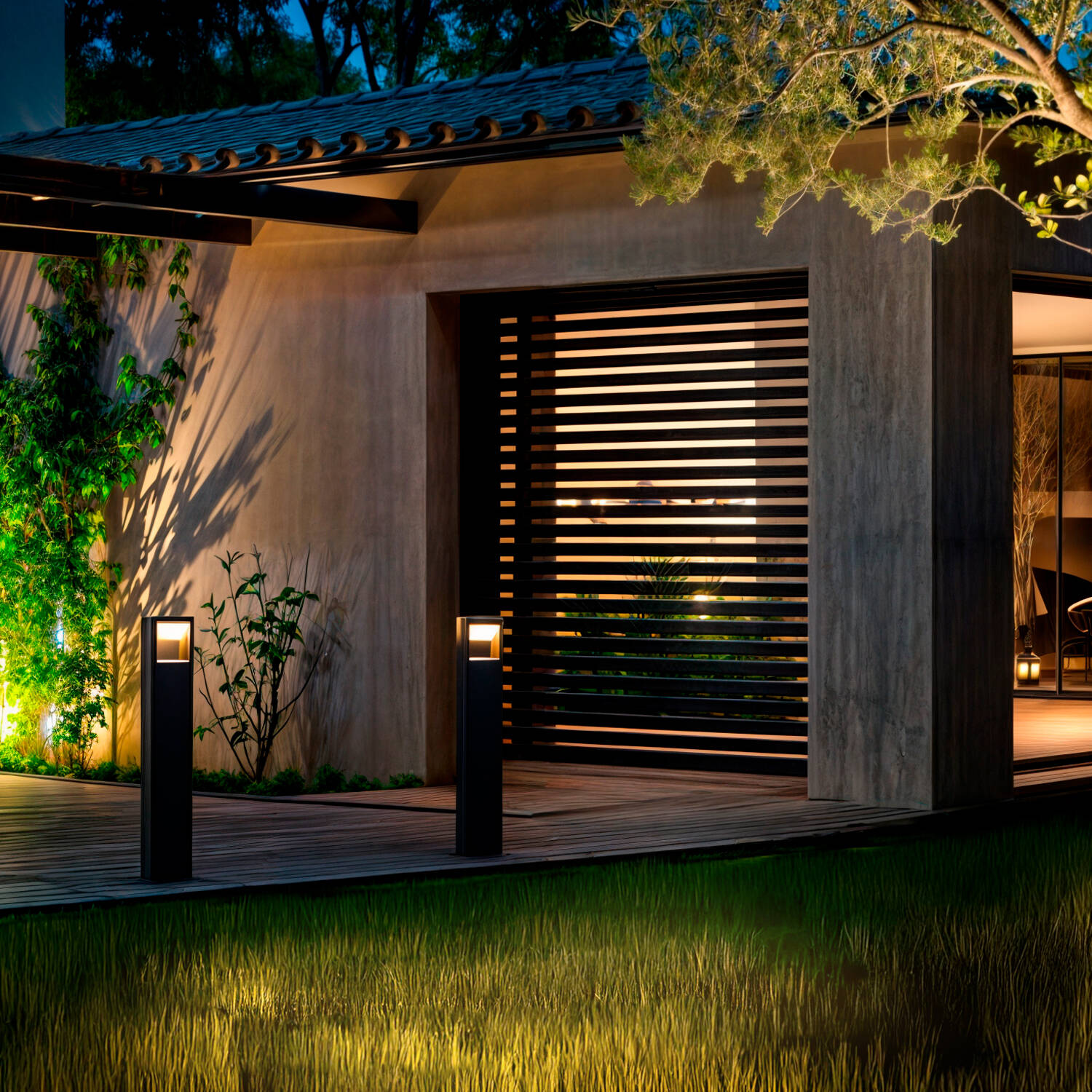Sa silhouette élancée de 80 cm s’intègre naturellement aux jardins modernes et aux allées d’entrée. Le noir mat et le diffuseur intégré créent un équilibre entre esthétique minimaliste et présence lumineuse, valorisant plantations et volumes architecturaux sans gâcher la composition paysagère.