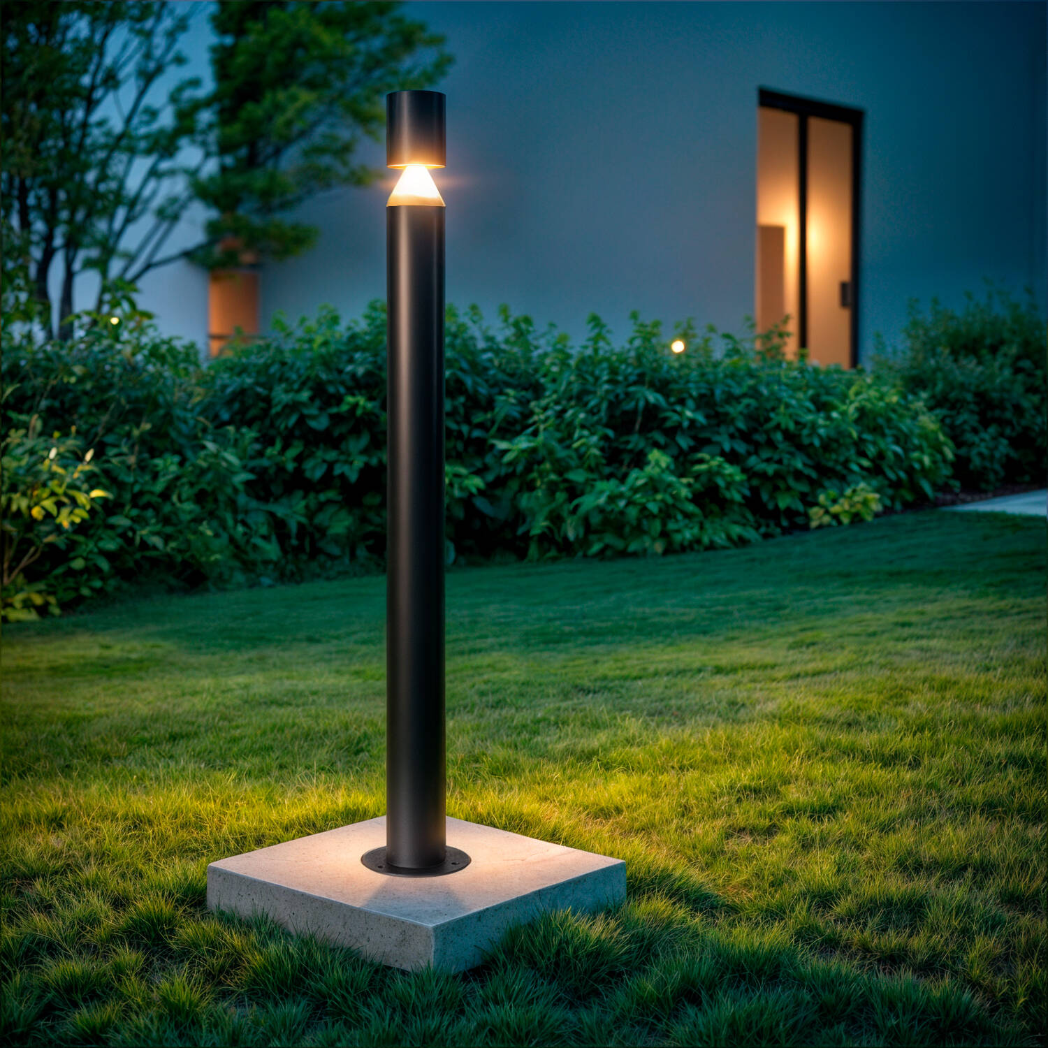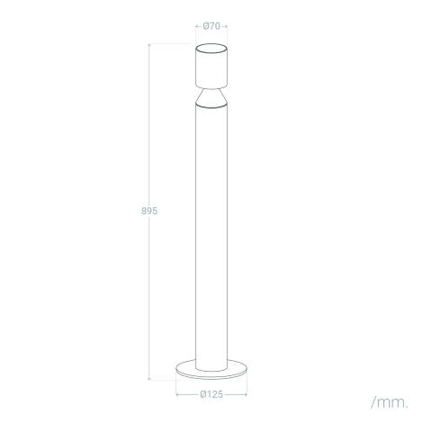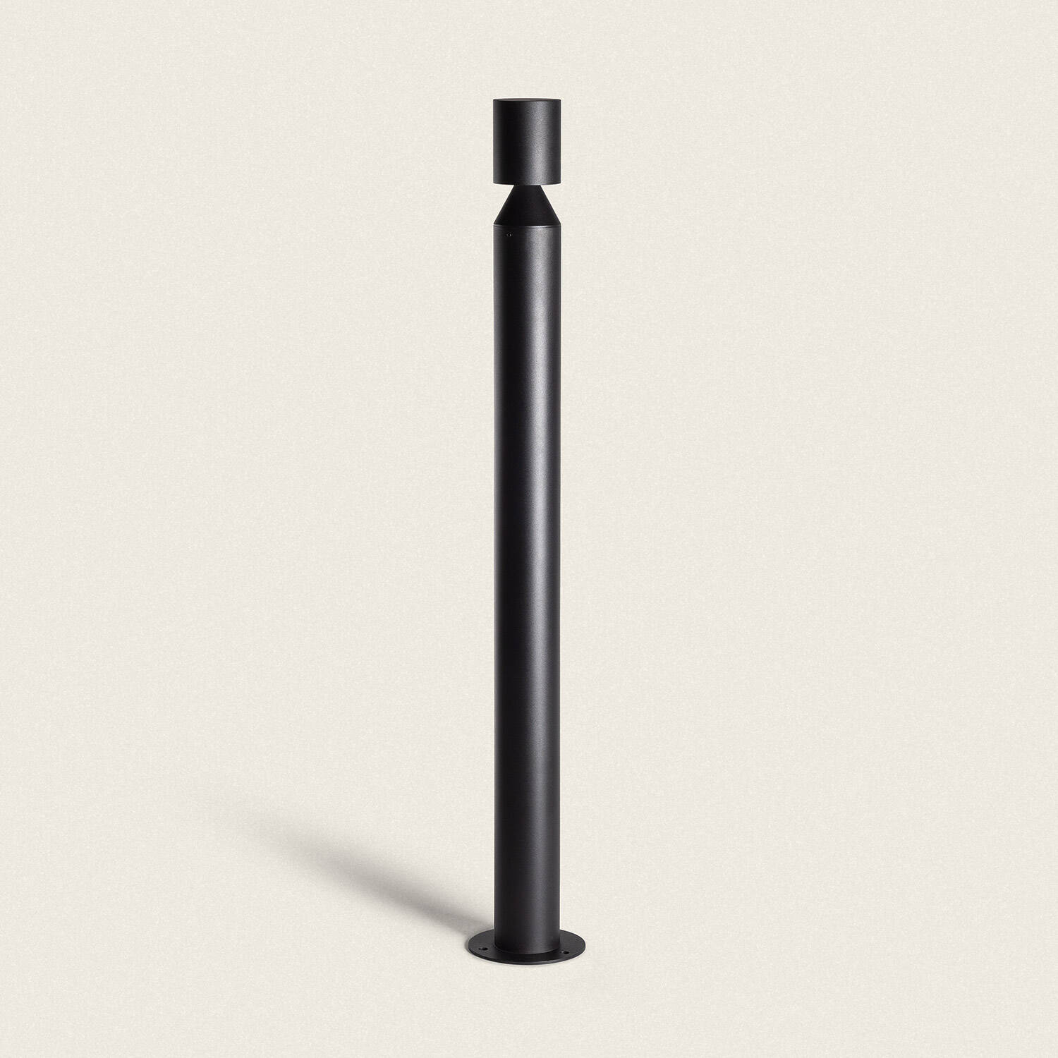 Le profil mince de 70 mm de diamètre et la hauteur maîtrisée de 858 mm offrent un équilibre parfait entre présence et discrétion. La finition noire mate en aluminium assure une esthétique premium et légère, idéale pour allées, terrasses et entrées sans encombrer visuellement l’espace.