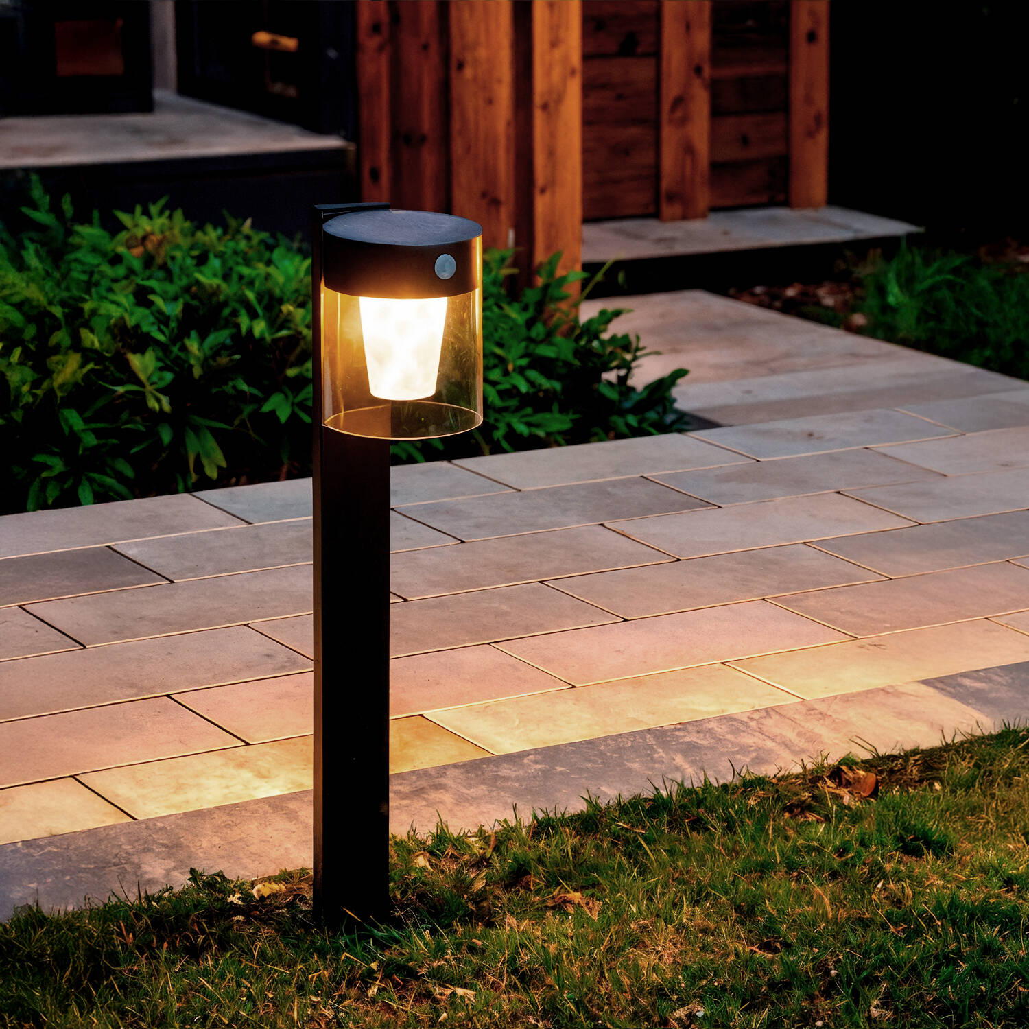 Le détecteur de mouvement PIR intégré active l’éclairage dès qu’une présence est détectée, renforçant la sécurité des abords. Avec une portée d’environ dix mètres et un angle large, la balise offre une détection précise tout en limitant les déclenchements inutiles lors des soirées.