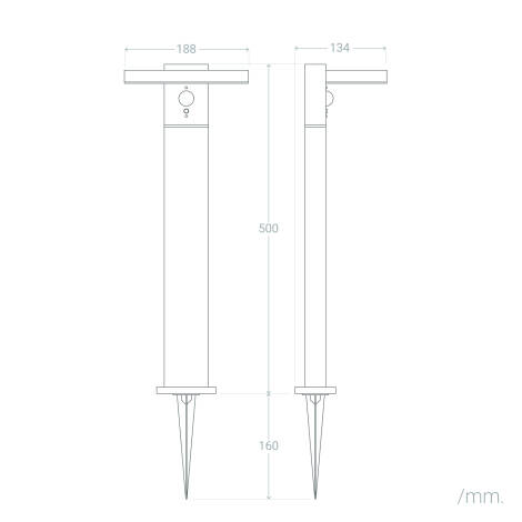 Son fût en aluminium noir offre une silhouette contemporaine et résistante aux intempéries, protégée par un indice IP44 et un châssis certifié IK06. Avec ses lignes épurées et sa hauteur de 50 cm, la balise s’intègre discrètement aux aménagements extérieurs les plus raffinés.