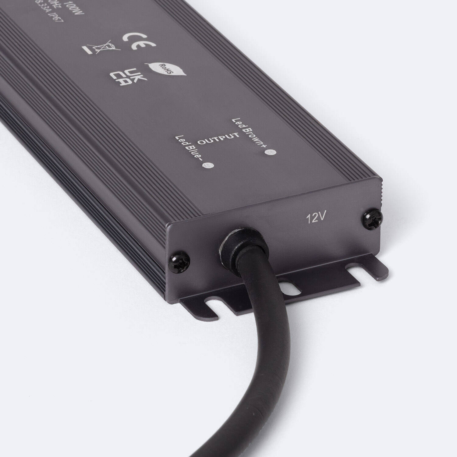 Bloc alimentation étanche 12V DC IP67 idéal pour l’éclairage extérieur et les installations LED en extérieur ou intérieur. Son boîtier en aluminium compact et robuste assure une alimentation stable de 100 W avec un excellent facteur de puissance, tout en résistant à l’eau, à la poussière et aux conditions exigeantes.