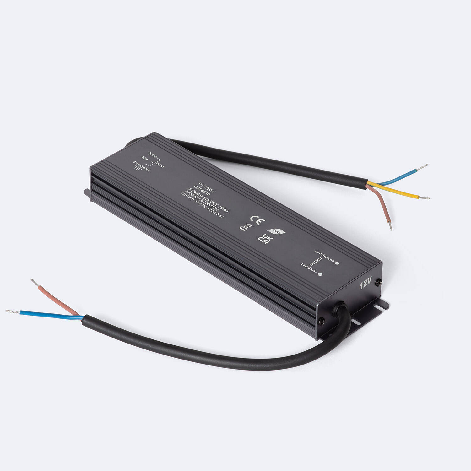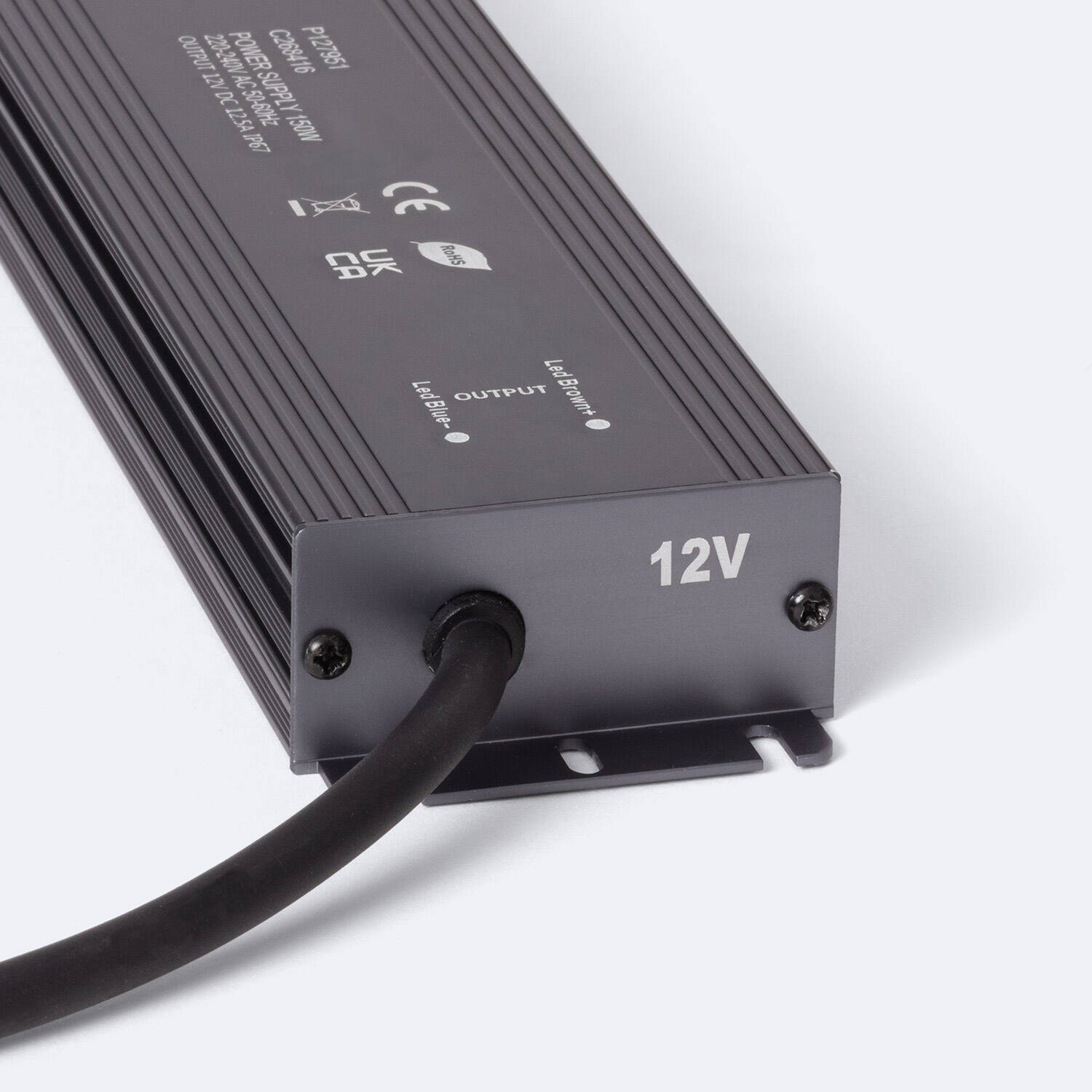 Bloc alimentation étanche 12V DC 150 W conçu pour l’éclairage extérieur et les installations LED en environnement exigeant. Son boîtier en aluminium compact avec protection IP67 assure une alimentation fiable, stable et durable en intérieur comme en extérieur, avec une intensité de 12.5 A adaptée aux équipements 12V DC.