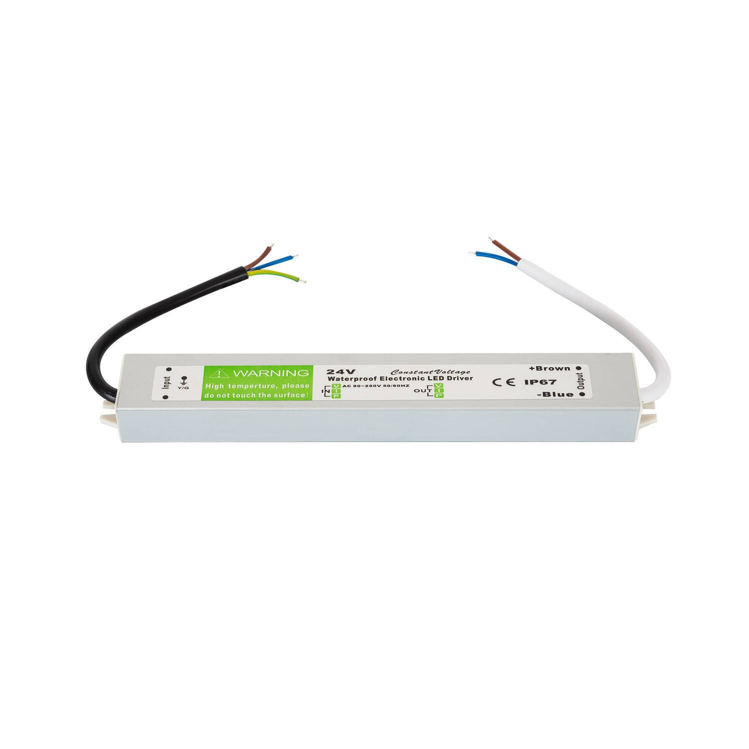 Bloc d’alimentation étanche 24V DC 50W conçu pour l’éclairage extérieur et les installations LED en basse tension. Son boîtier en aluminium avec protection IP67 assure une alimentation fiable face à l’humidité et aux intempéries, avec une sortie stable de 24V DC 2A, idéale pour un usage extérieur durable et sécurisé.