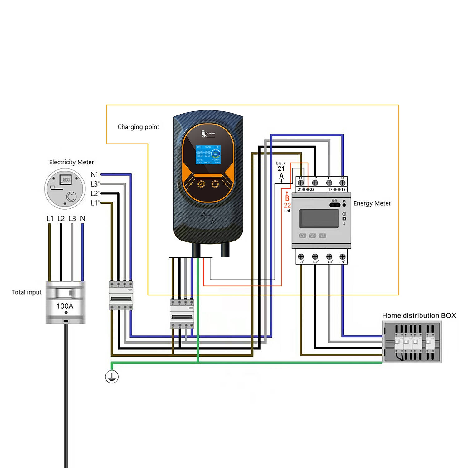 Borne de recharge pour voiture électrique SMART WiFi 11-22kW triphasé 5 m, idéale en extérieur comme en intérieur. Son format mural compact, sa protection IP65 et son pilotage via Tuya Smart offrent une recharge fiable, connectée et pratique pour habitation, garage ou espace professionnel alimenté en 400V.