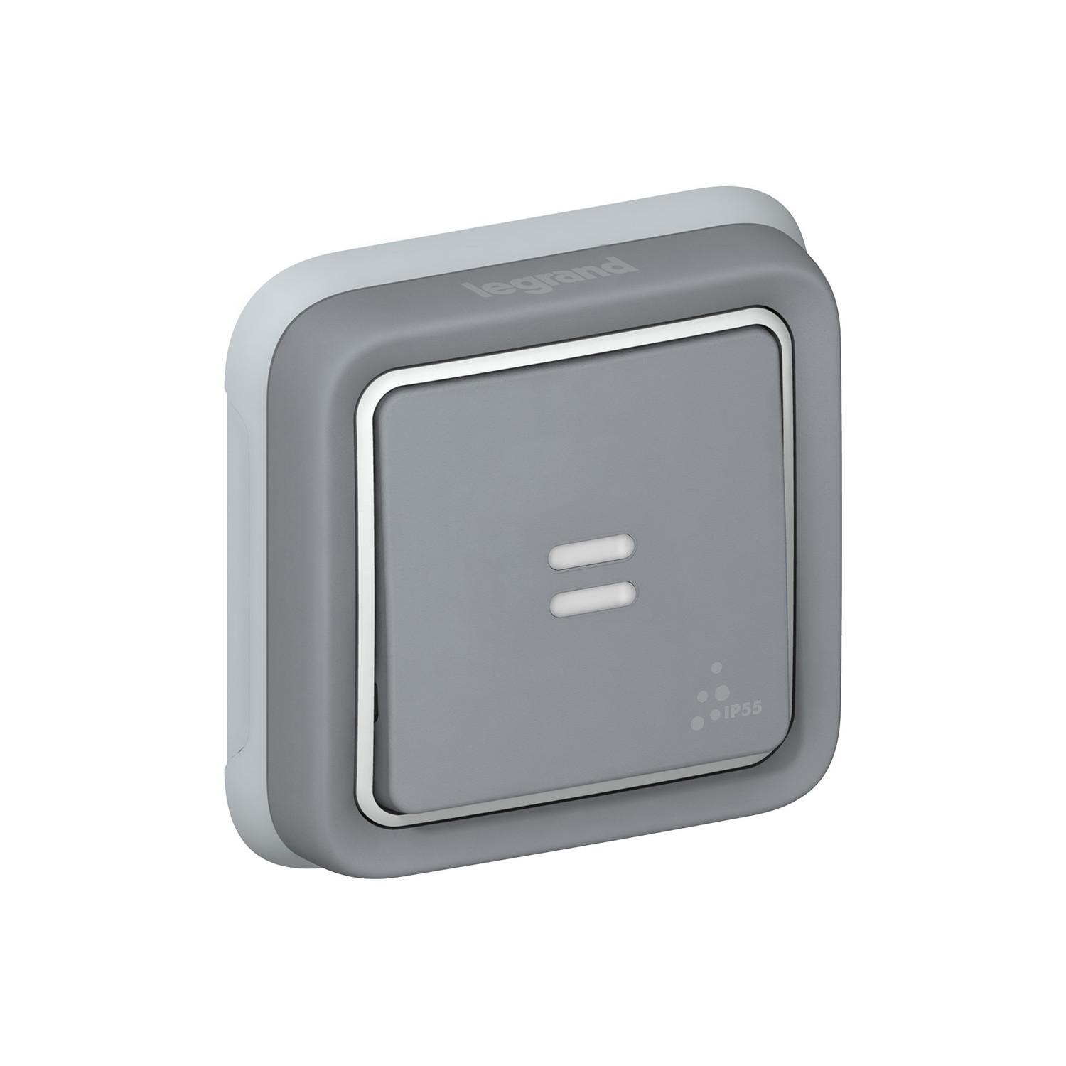 Bouton-Poussoir NO+NF Lumineux Monobloc Encastré Plexo LEGRAND 069821