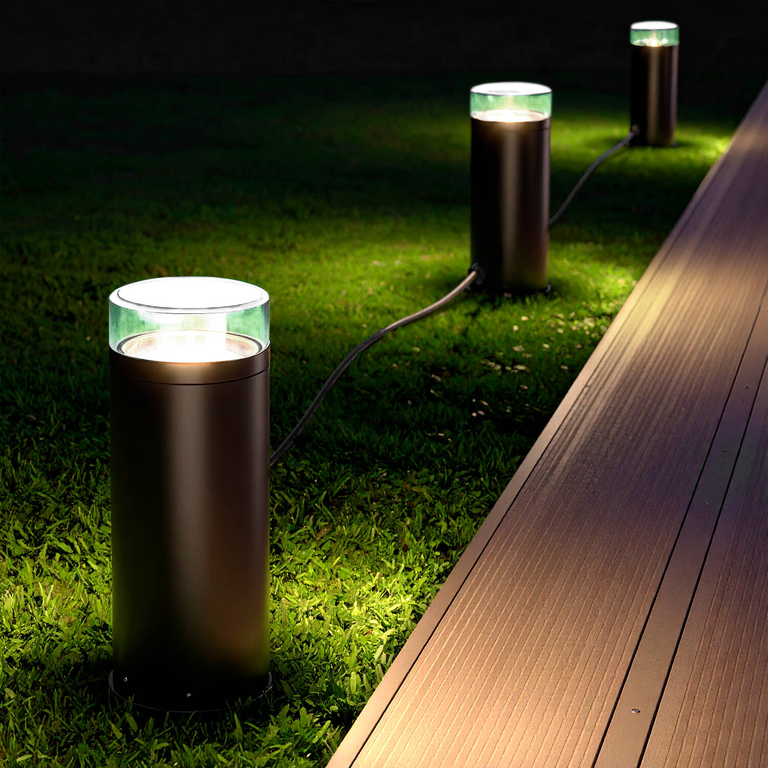 Finition noire discrète et câble de 10 mètres facilitent un routage invisible le long des allées et massifs. Les connecteurs soignés offrent une apparence professionnelle, permettant d’intégrer rubans LED et bornes sans altérer l’esthétique de vos aménagements extérieurs, et facilitant la maintenance future discrète.