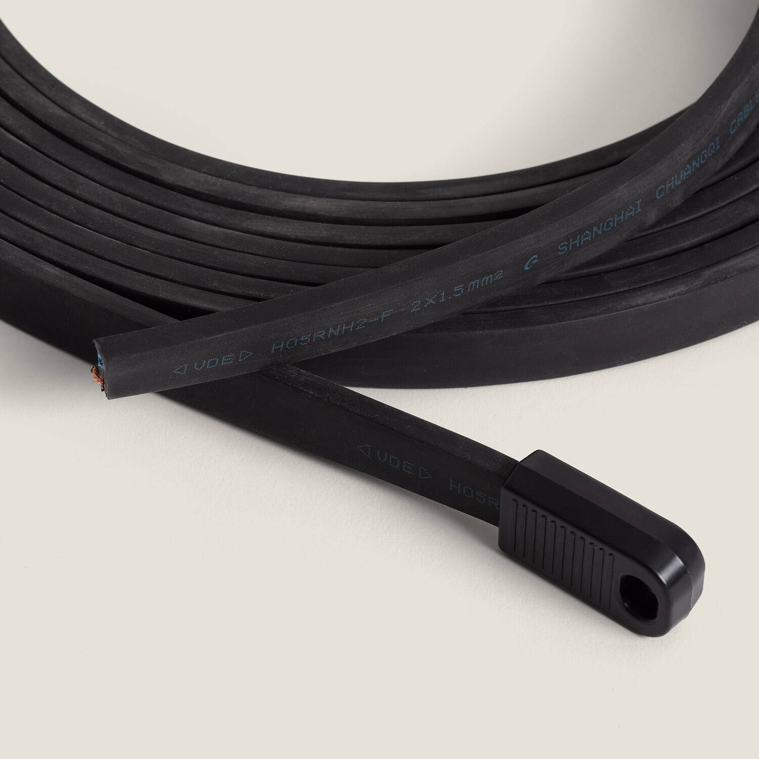 Vendu au mètre et livré en un seul tronçon jusqu’à 100 mètres, ce câble plat s’adapte précisément aux longueurs désirées. L’achat comprend le connecteur d’alimentation et le bouchon de terminaison, tandis que l’absence de douilles vous laisse libre de choisir et positionner les points lumineux.