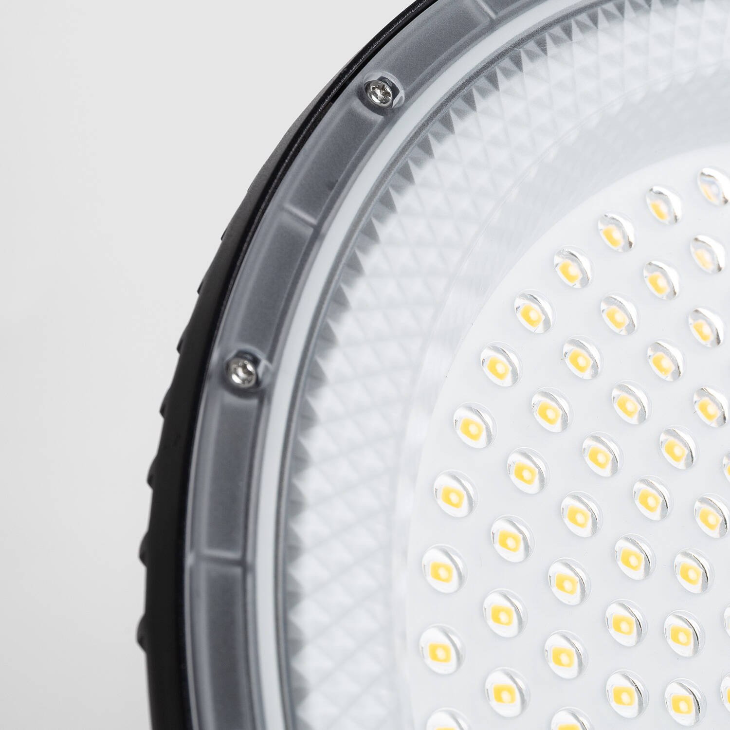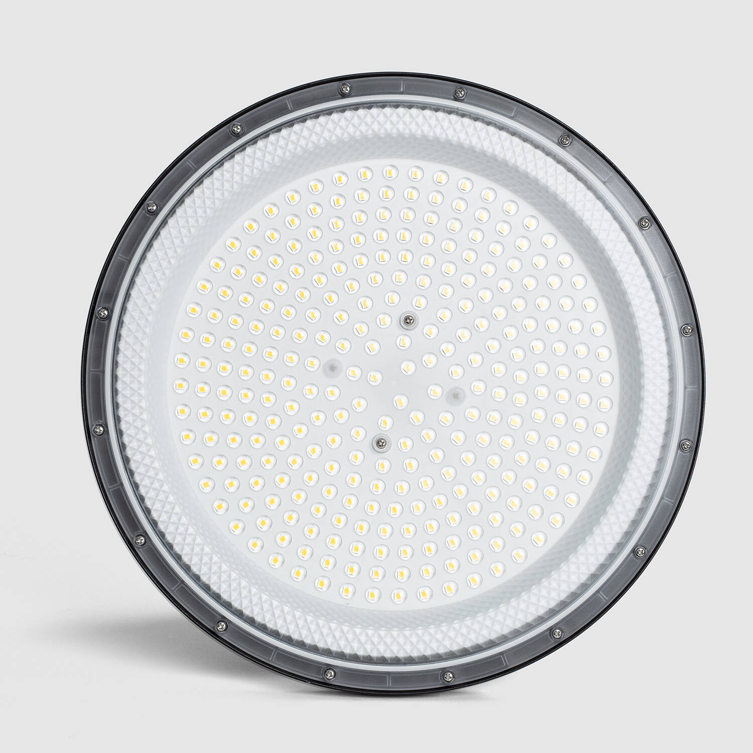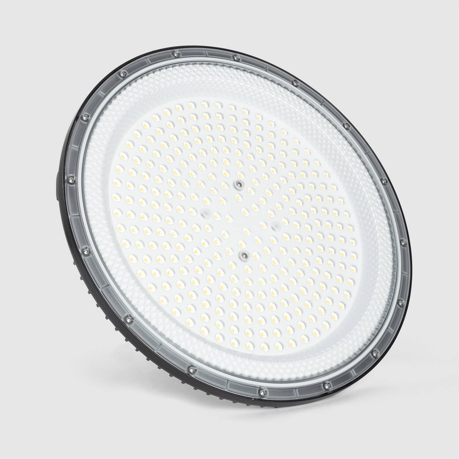 L’optique 90° garantit une diffusion contrôlée et homogène sur de larges surfaces, limitant les zones d’ombre et optimisant l’éclairement d’ateliers, entrepôts et parkings. Le design UFO favorise un rendu uniforme depuis les hauteurs et facilite l’éclairage de grandes travées professionnelles.