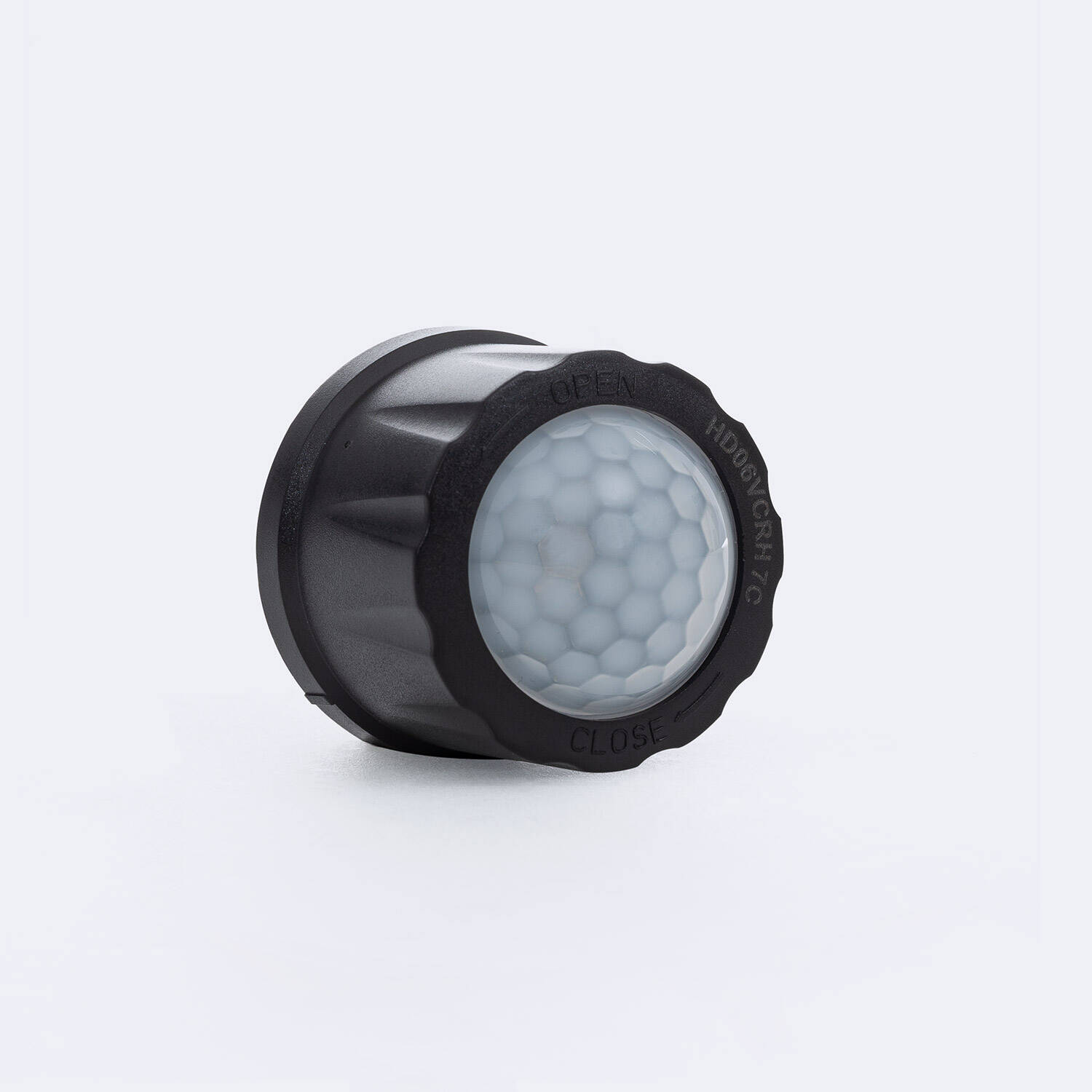 Oui la cloche dispose d'une prise Zhaga plug and play pour modules de détection. Le capteur PIR visible sur les photos offre un angle de détection de 100° et une portée jusqu'à 12 m, ce qui convient pour des hauteurs de suspension industrielles. Remplacez ou mettez à niveau le capteur par un module Zhaga compatible si besoin.