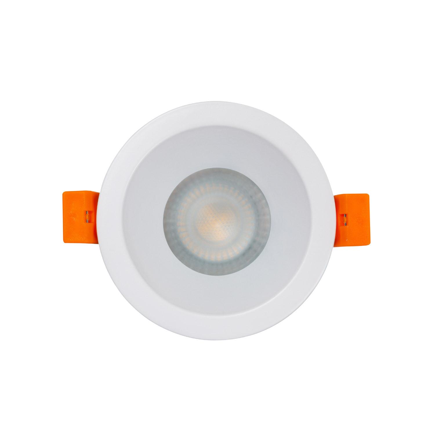 Sa finition blanche satinée en aluminium apporte une allure premium et une grande durabilité. Le format compact (Ø extérieur 85 mm, coupe Ø75 mm, hauteur 44 mm) permet une intégration soignée dans les plafonds, sans compromettre l’esthétique ni la performance lumineuse.
