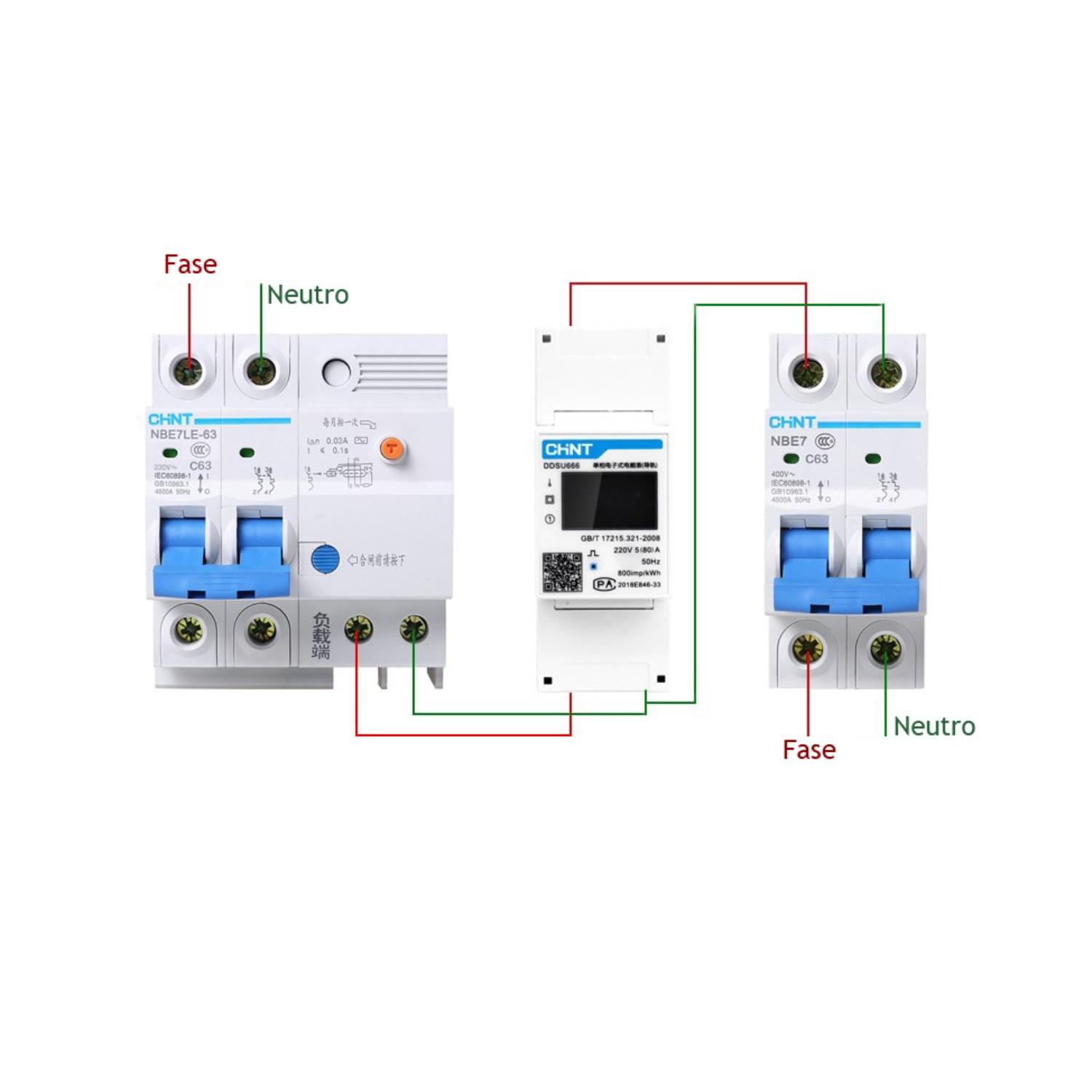 Le compteur fonctionne en monophasé sur 220-240 V AC ou 400 V AC et sur une fréquence 50-60 Hz. Il faut raccorder la phase et le neutre aux bornes conformes comme sur le dessin de câblage et s'assurer que les protections en amont et en aval sont bien en place. Suivez impérativement le schéma fourni par le fabricant lors du branchement.
