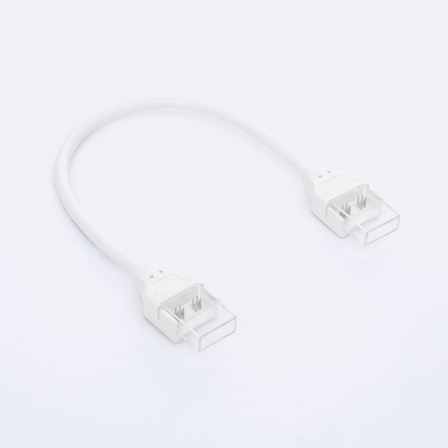 Le câble mesure 150 mm ce qui facilite le raccordement entre deux rubans ou vers une alimentation proche. Pour l'installation, alignez le ruban LED RGBIC COB 12 mm avec les contacts du connecteur, insérez en veillant à la polarité et clipsez fermement. Évitez de tirer sur le câble et sécurisez la liaison avec un support si nécessaire.