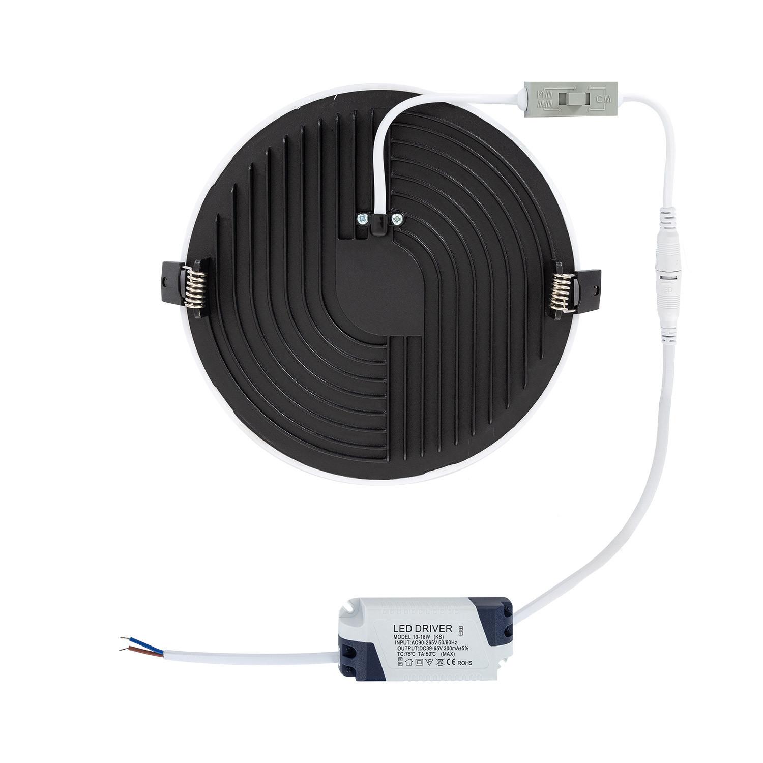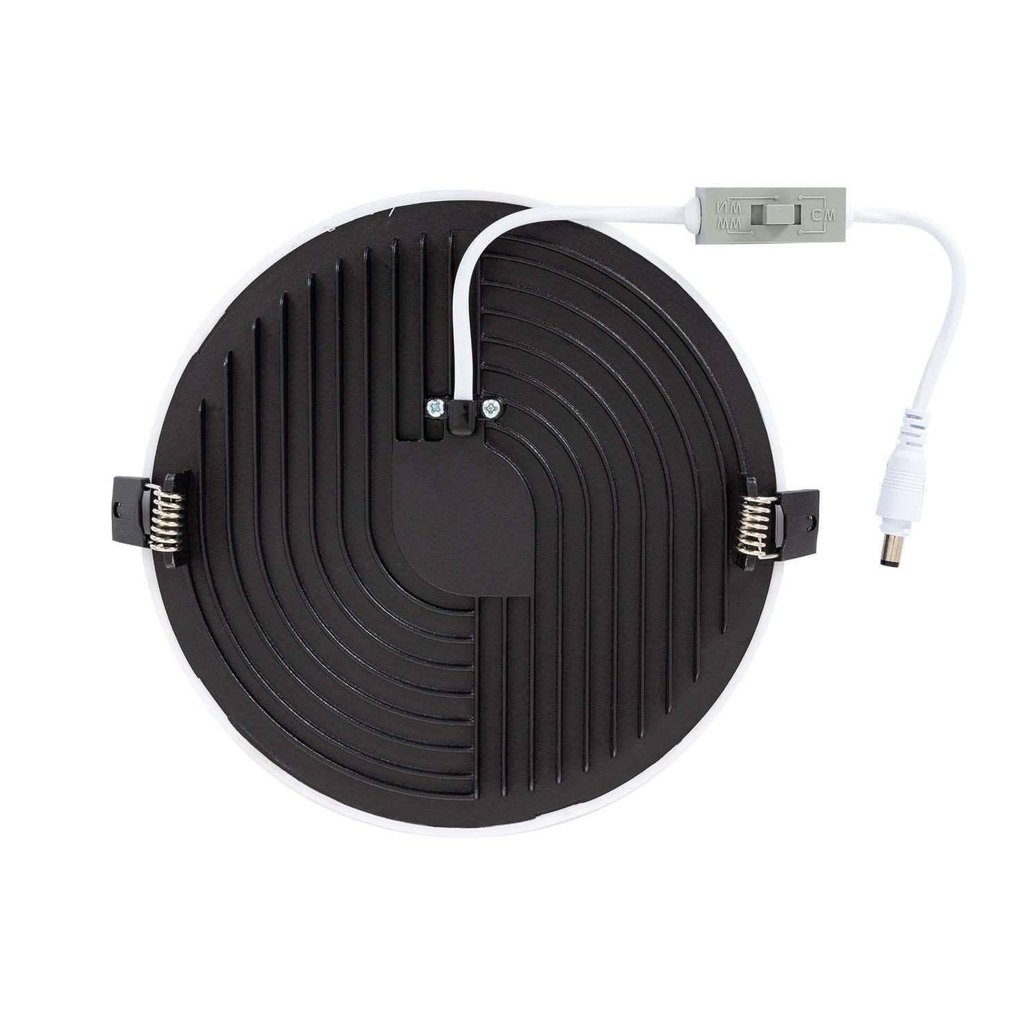 L'installation est simple et conçue pour l'encastrement dans un plafond creux. Préparez une ouverture de coupe Ø155 mm et vérifiez que l'espace disponible accepte la hauteur de 25 mm. Les ressorts de fixation visibles sur le produit permettent un maintien sûr dans le plafond. Coupez l'alimentation électrique avant toute intervention et connectez le câble au driver fourni 220-240V AC. Le driver est remplaçable si nécessaire, mais si vous n'êtes pas à l'aise avec le câblage électrique faites appel à un électricien qualifié.