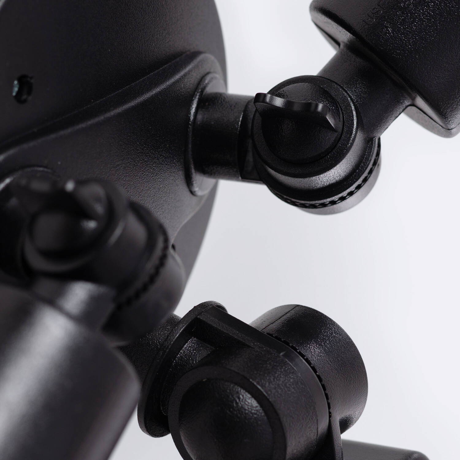 La fixation murale compacte s’intègre discrètement à la façade, tandis que les deux têtes orientables et réglages intégrés permettent d’ajuster précisément la direction de l’éclairage. Son design en noir mat offre une esthétique soignée, compatible avec différents styles extérieurs et résidentiels.