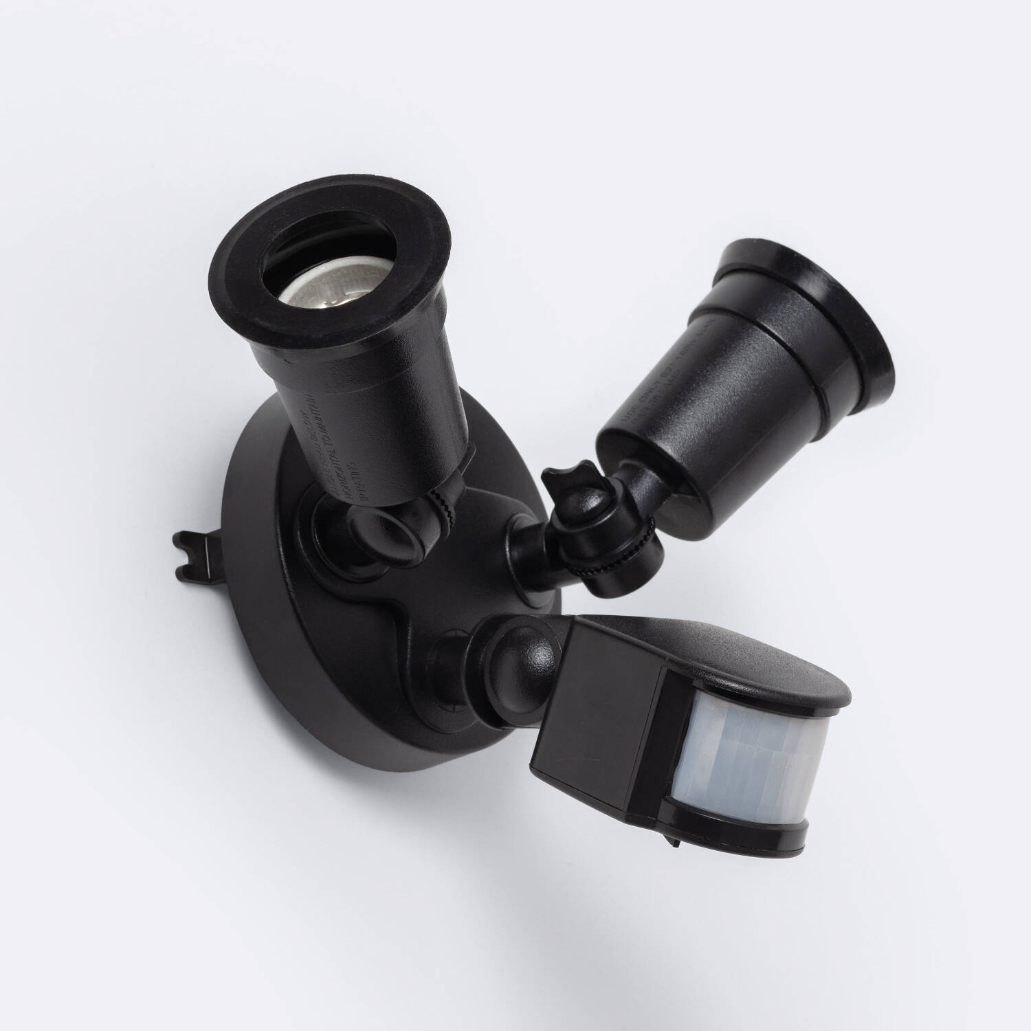 Détecteur de Mouvement PIR Crépusculaire 180° Mural Extérieur IP44 pour Deux Ampoules E27 Noir